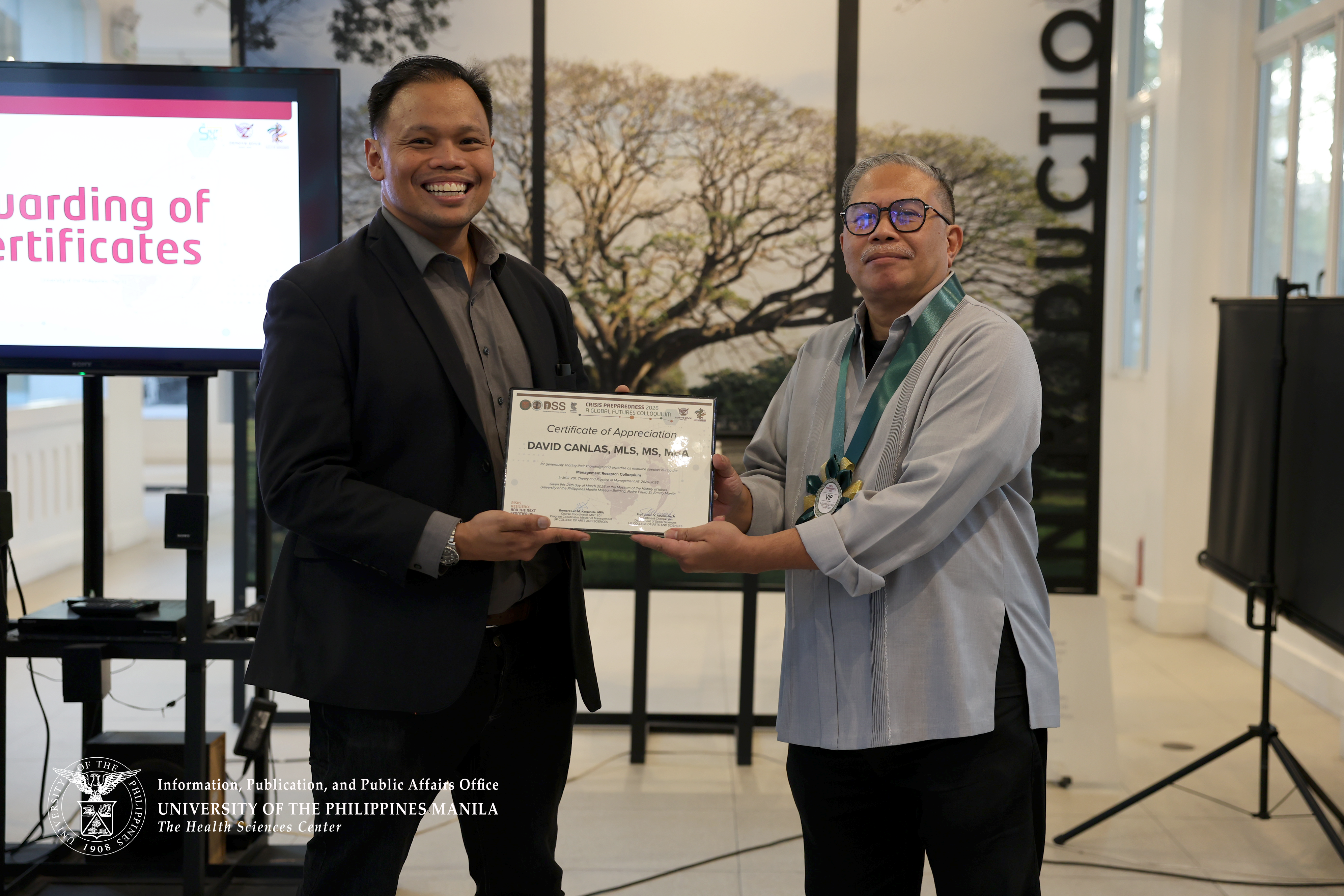Consider how the world could evolve over the next 10, 20, or 50 years—how emerging technologies might redefine society, how geopolitical tensions could reshape the global order, and what entirely new risks may arise that humanity is only beginning to understand. With this forward-looking perspective, the University of the Philippines Manila College of Arts and Sciences (CAS) Department of Social Sciences (DSS), in collaboration with the CAS Master in Management program, the Constantino Foundation, and Zephyr Edge MTG 201, convened students, faculty, and experts for the “Crisis Preparedness: 2026 A Global Futures Colloquium.” The interdisciplinary event explored emerging risks, resilience strategies, and sustainability pathways in an increasingly uncertain world. It was held on March 24, 2025, at the UP Manila Museum of a History of Ideas (MHI).