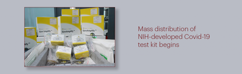 The UP Manila NIH was the first facility to use the GenAmplifyTM, Covid 19 testing kit rRT-PCR developed by Dr. Raul Destura and researchers from the NIH and Philippine Genome Center (PGC). The mass distribution of the kits started on April 20, 2020 according to the Department of Science and Technology which gave P53.2M for the development of this. Its use was approved by the Food and Drug Administration on April 3 after three weeks of field validation that covered 26,000 tests. Other institutions such as the PGC, Bataan General Hospital, Araneta Foundation, Office of the Vice President, and some local governments have availed of the kits, the DOST stated.