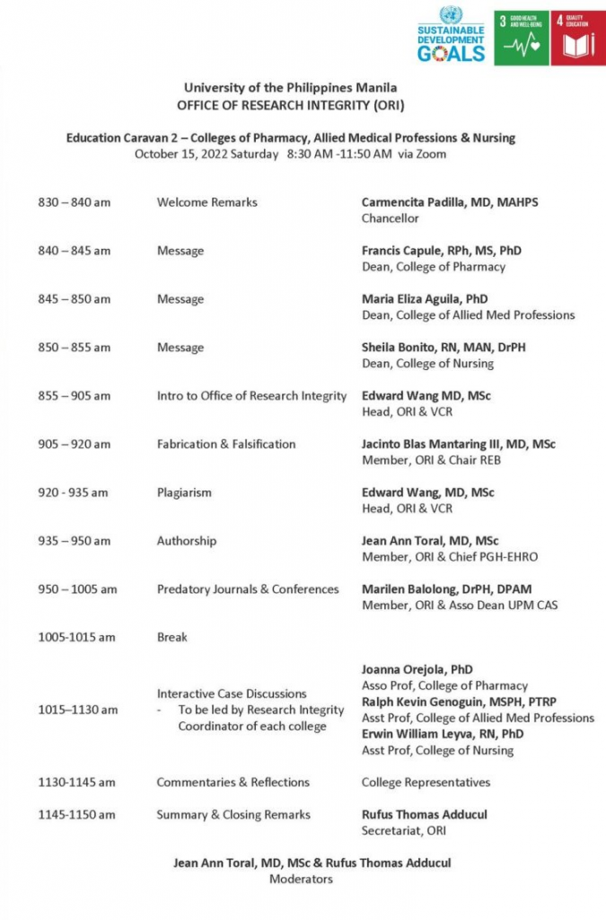 This is open to faculty, students, staff, and alumni of all 3 colleges and to the UP Manila Community.