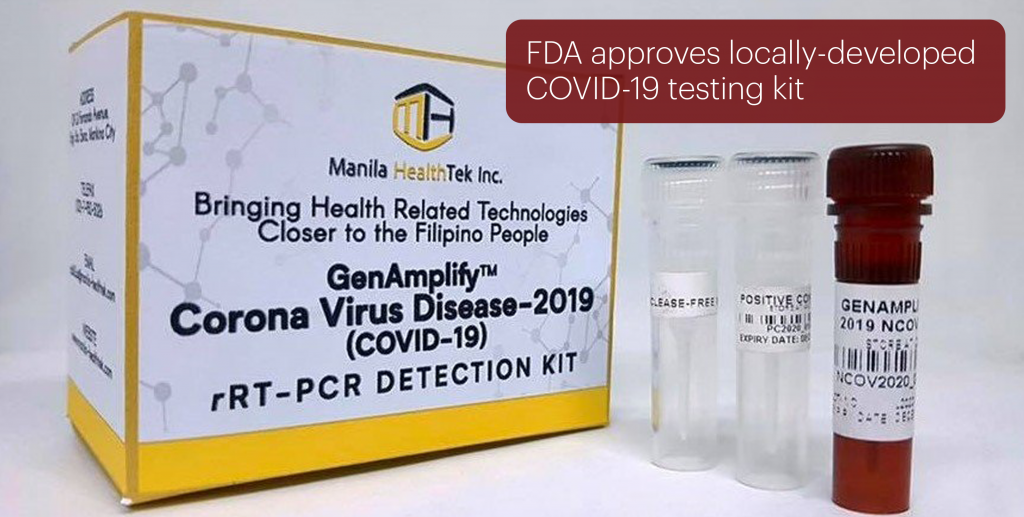 The Food and Drug Administration (FDA) has officially announced its approval of GenAmplifyTM Corona Virus Disease-2019 (COVID-19) RT-PCR Detection Kit on its advisory dated 3 April 2020. This is the first locally-made, PCR-based COVID-19 test kit for commercial use. It was developed by Dr. Raul V. Destura and the scientists of the UP Manila National Institutes of Health (UPM-NIH), with funding from the Department of Science and Technology (DOST). The testing kits will be manufactured by the Manila Health Tek, Inc.
