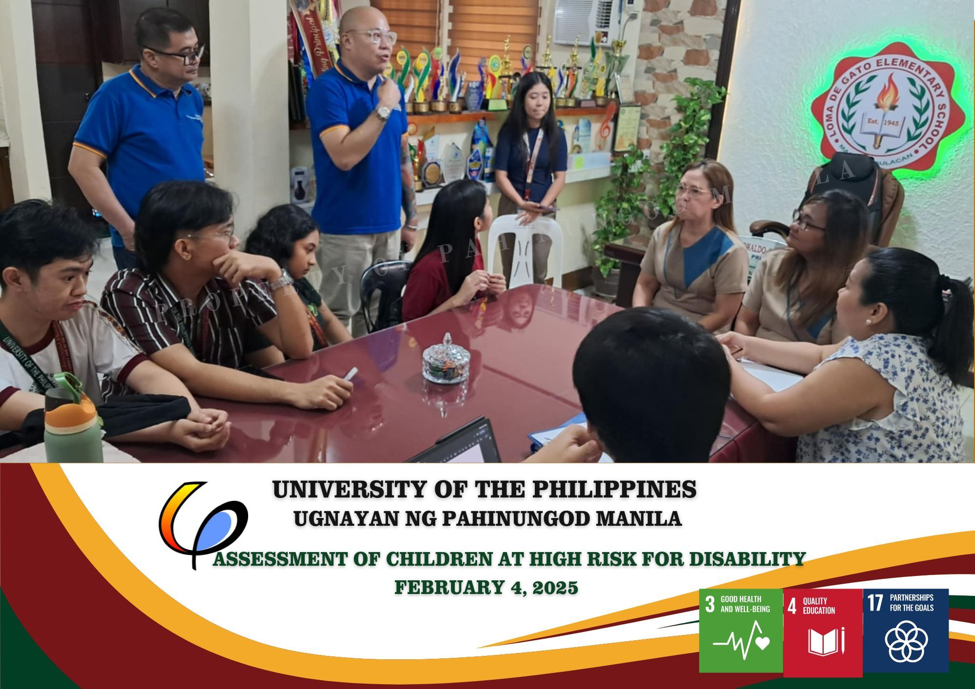 On Feb. 4, Pahinungod Manila launched a new project in partnership with the Department of Behavioral Sciences of the College of Arts and Sciences (CAS), the Department of Rehabilitation Medicine of the Philippine General Hospital (PGH), and the Rotary Club of Marilao to benefit children with special needs, as well as their parents. Kindergarten and grade one teachers of Loma de Gato Elementary School participated in a needs assessment to determine who among their pupils are at high risk for disability.