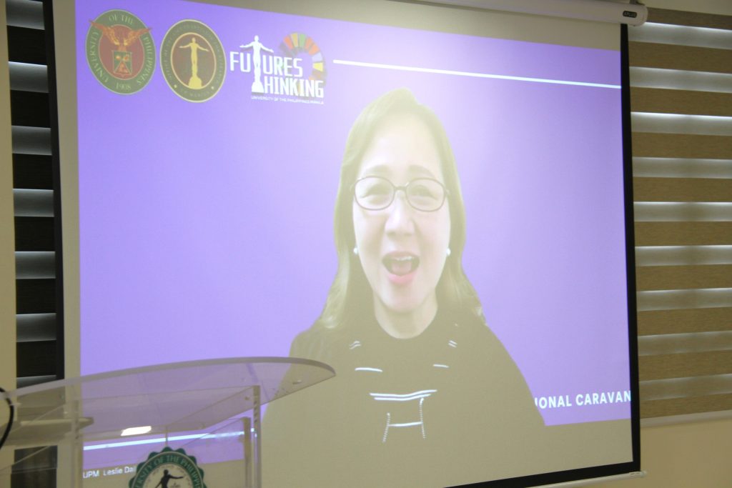 Visioning and backcasting as a methodology for future thinking was explained by Dr. Maria Llaine Callanta, associate professor at CM. Visioning is defined as the step on “developing and committing to a preferred future” for the benefit of society. In this methodology, the perspective of the stakeholders is from the present to the future. She further deepened the discussion by differentiating backcasting from visioning – backcasting, in contrast, is imagining the desired future being accomplished.