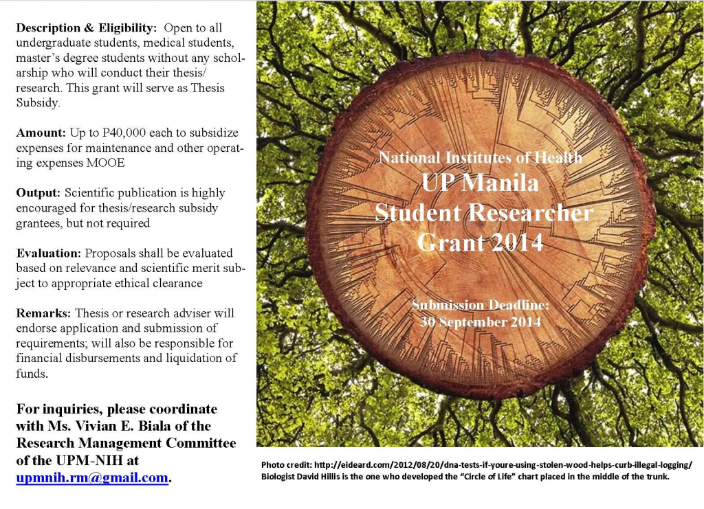 GRANTS: UPM Student Researcher Grant 2014: Call for Research or Thesis Proposals for Funding by the UPM-National Institutes of Health