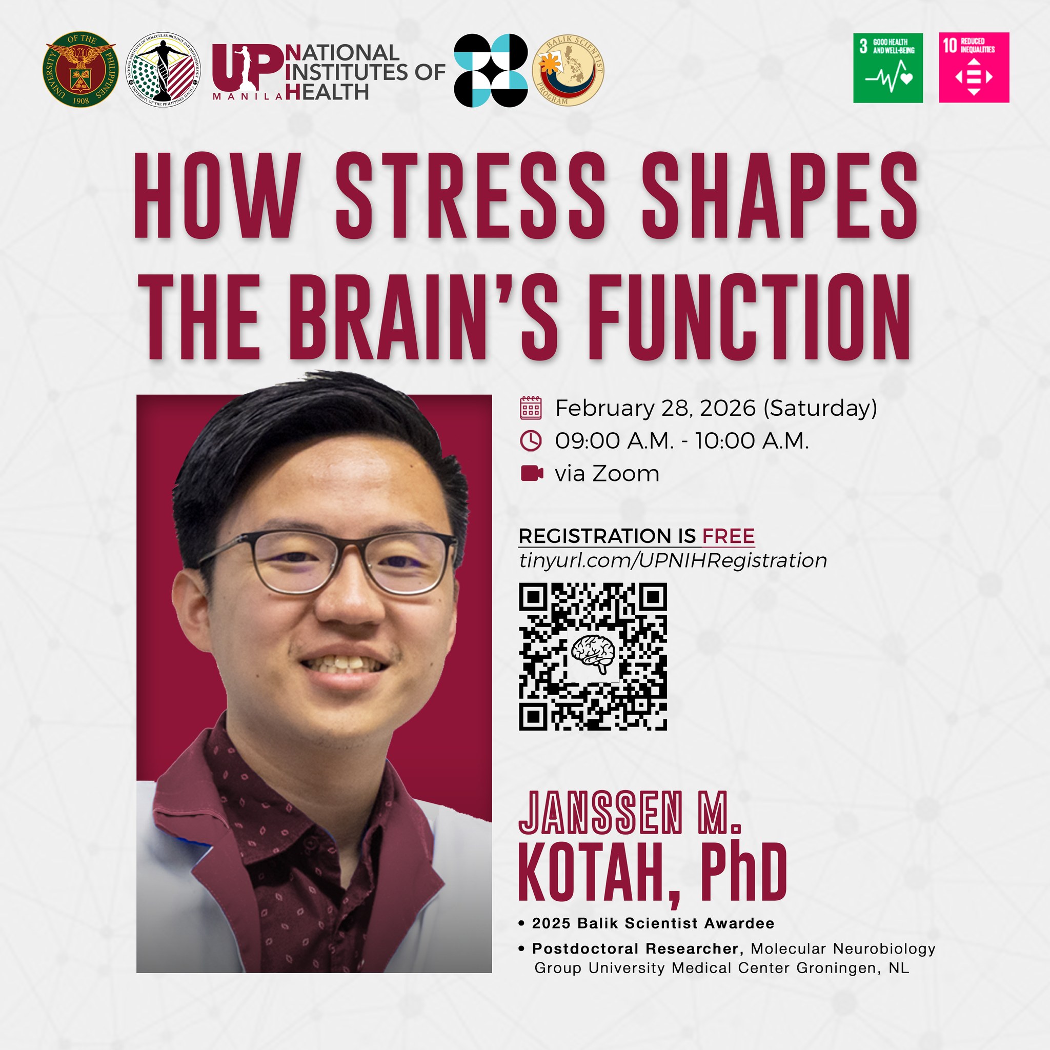 On Feb. 28, the National Institute of Molecular Biology and Biotechnology (NIMBB) at UP Manila hosted Dr. Janssen Kotah, a Department of Science and Technology (DOST) Balik Scientist and postdoctoral researcher from the University Medical Center Groningen, to deconstruct this phenomenon. His lecture, “How Stress Shapes the Brain’s Function,” served as a clinical warning to a nation grappling with systemic poverty and fragmented parenting.