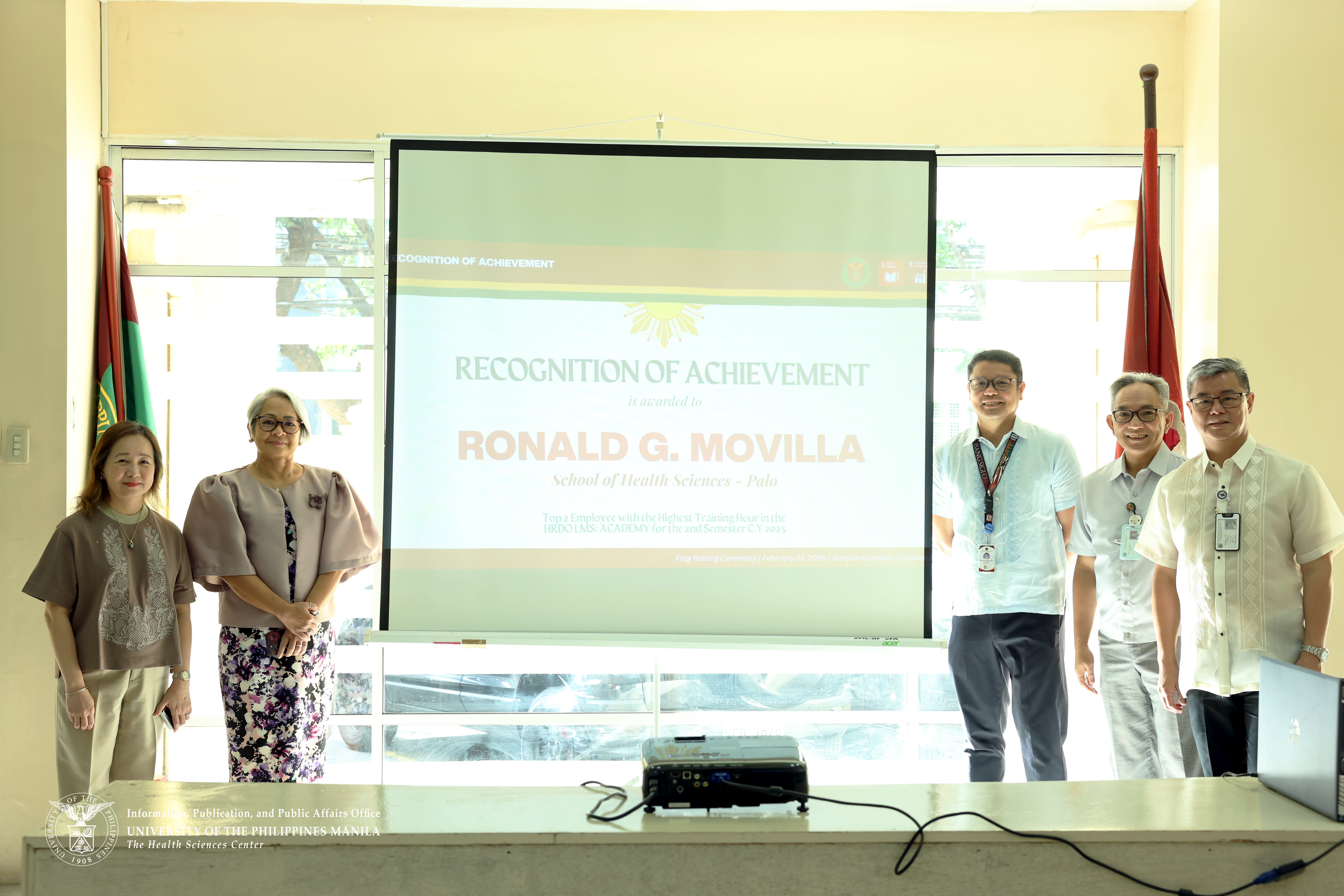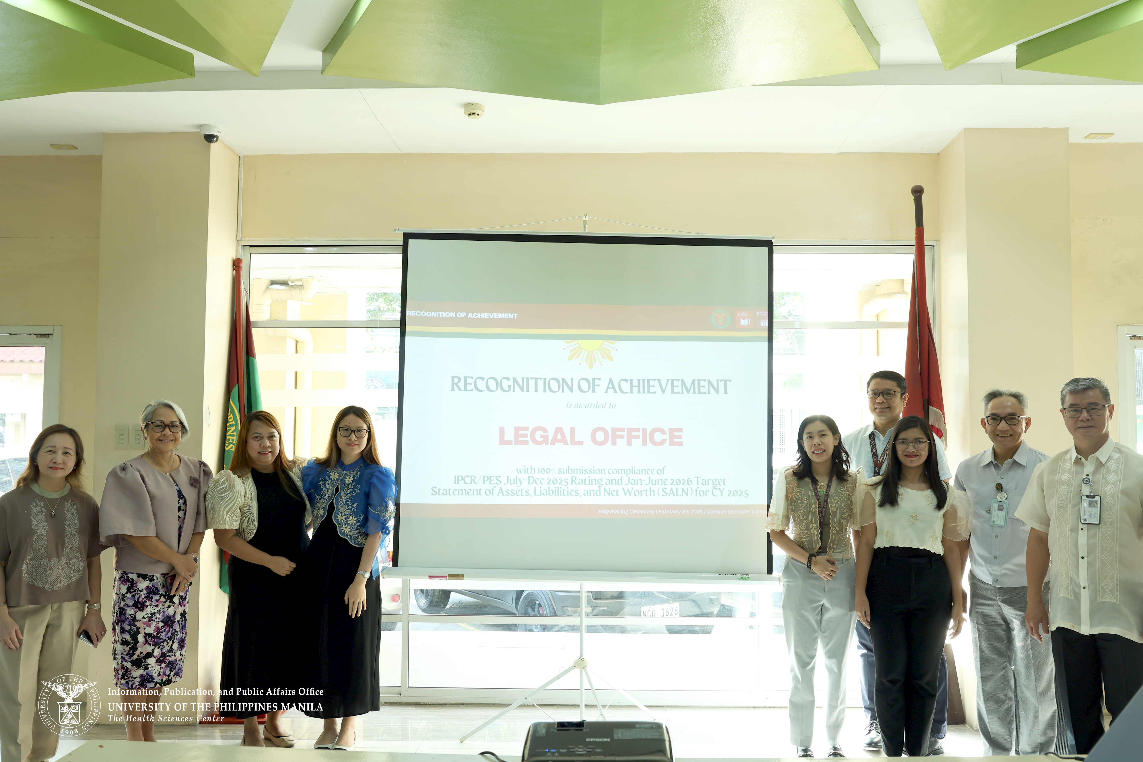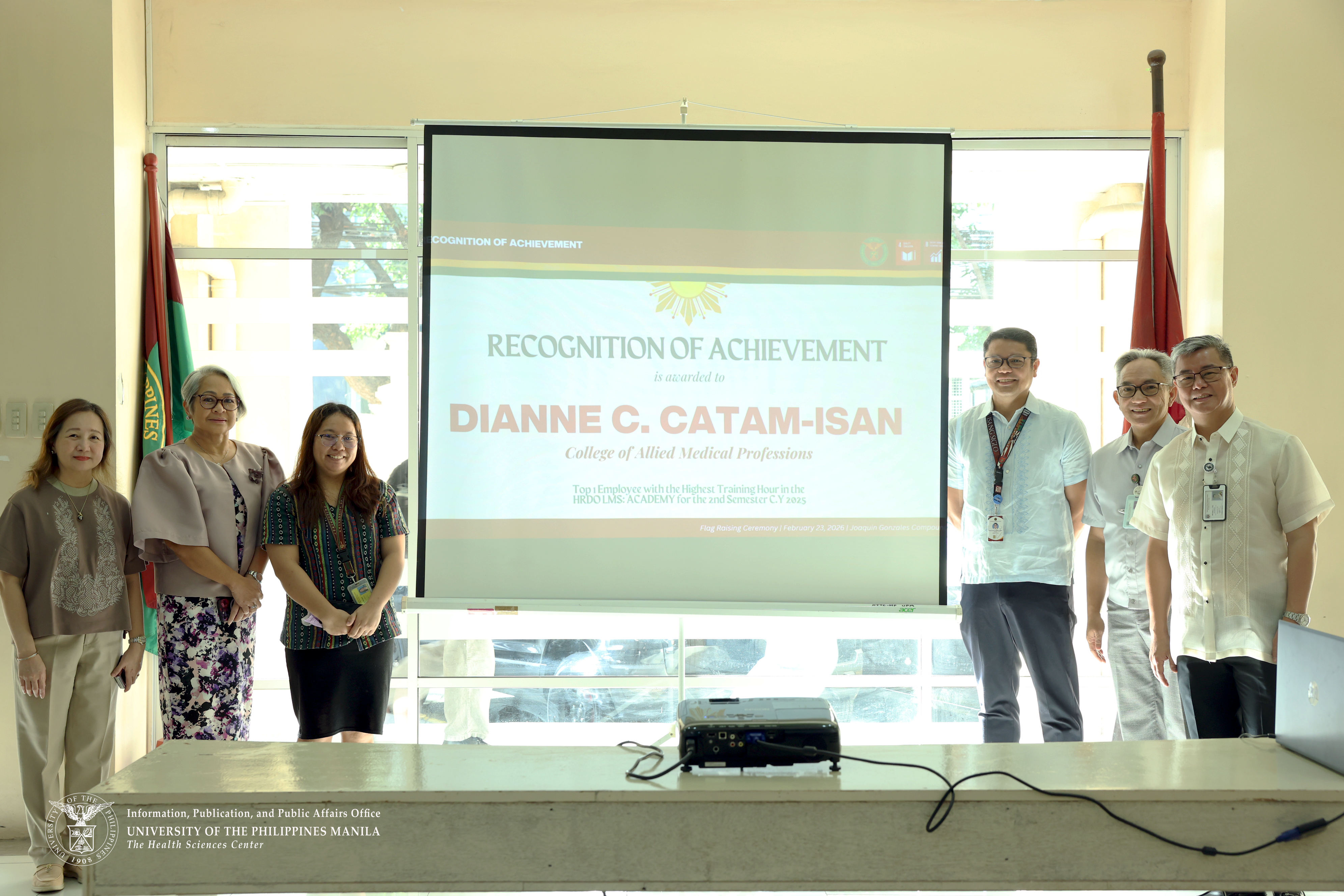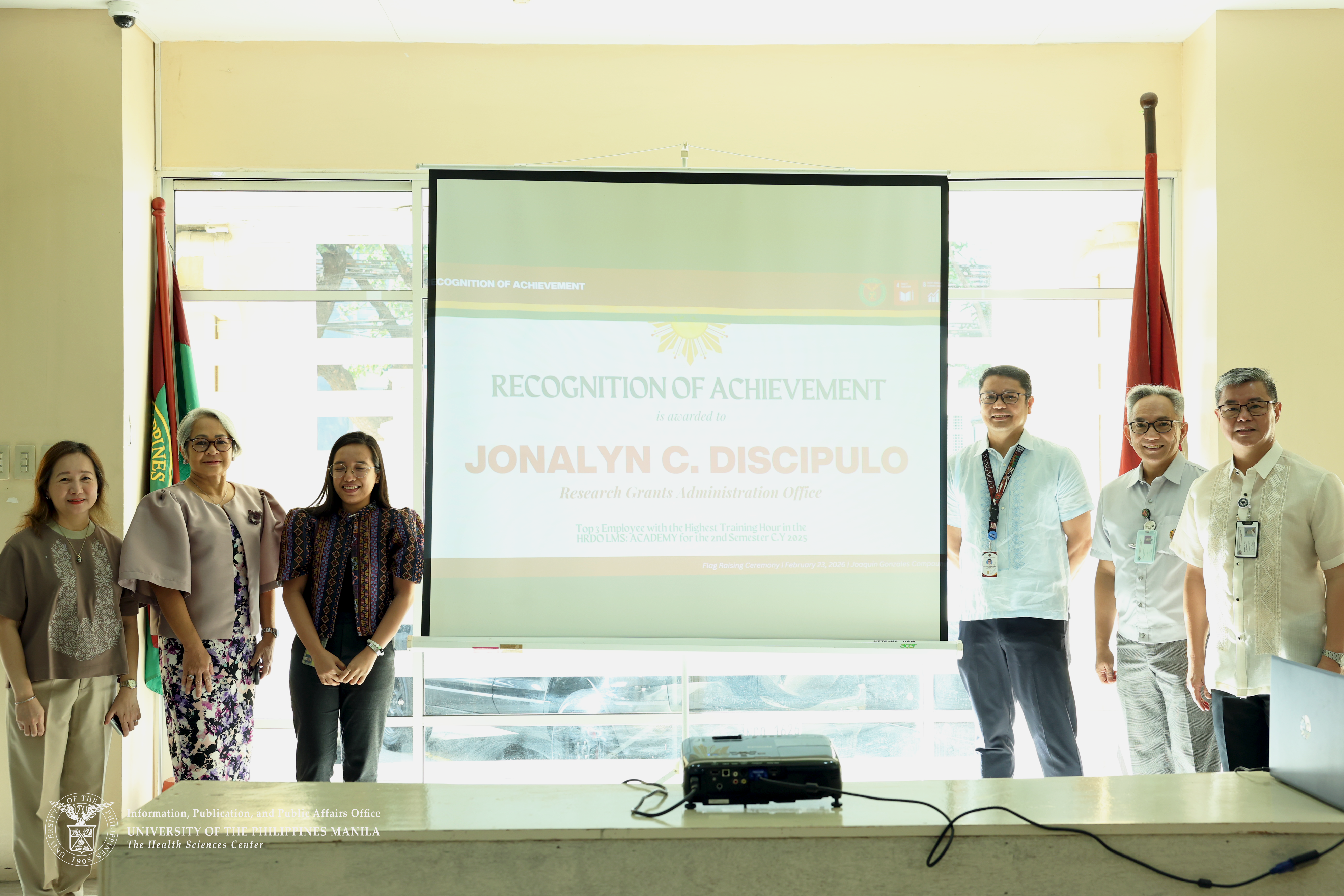 The University of the Philippines Manila Human Resource Development Office (HRDO) recognized outstanding offices and personnel during the Feb. 23, 2026, Flag Raising Ceremony held at the Joaquin Gonzales Compound, honoring units with full compliance in key administrative submissions and employees who demonstrated exceptional commitment to professional development.