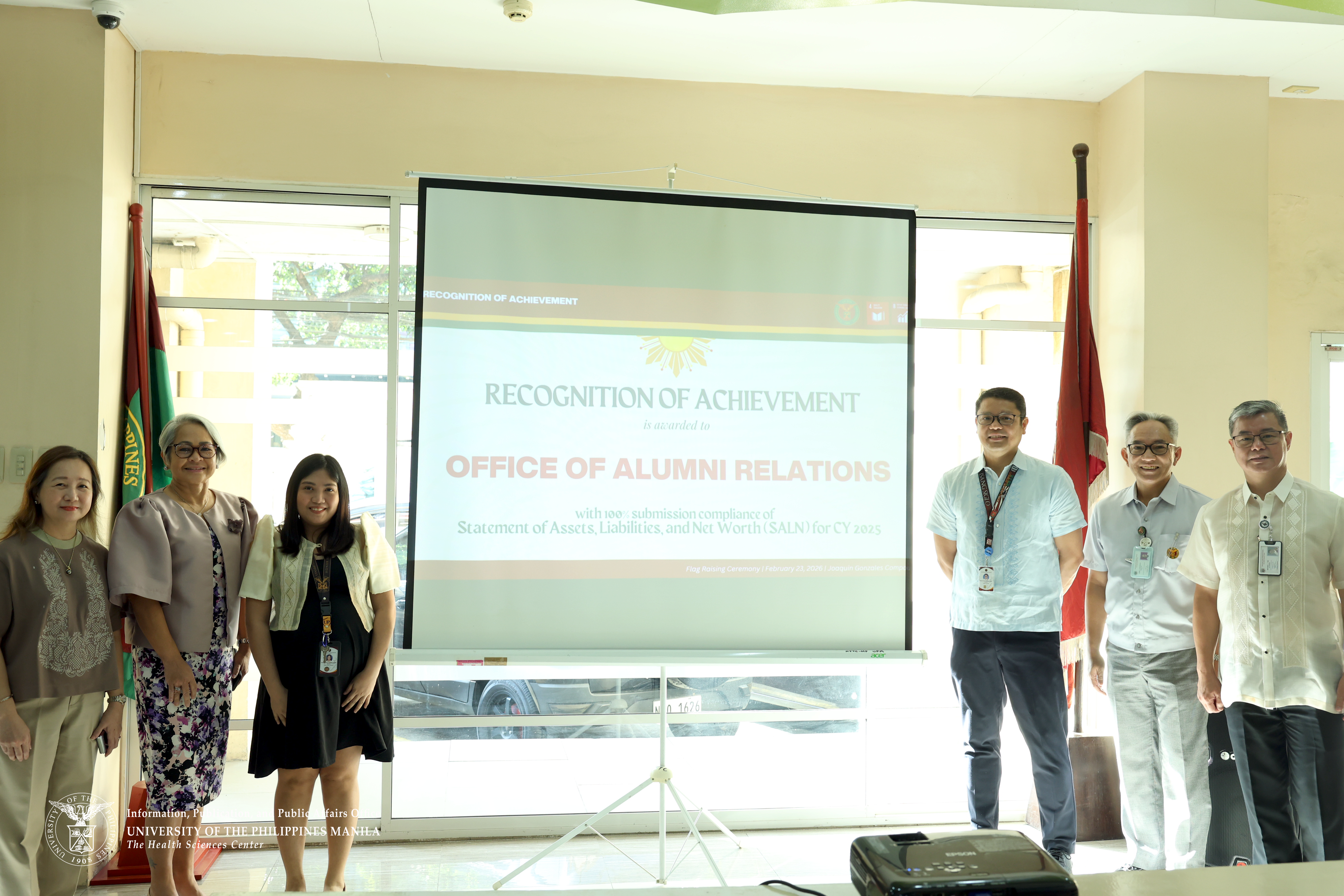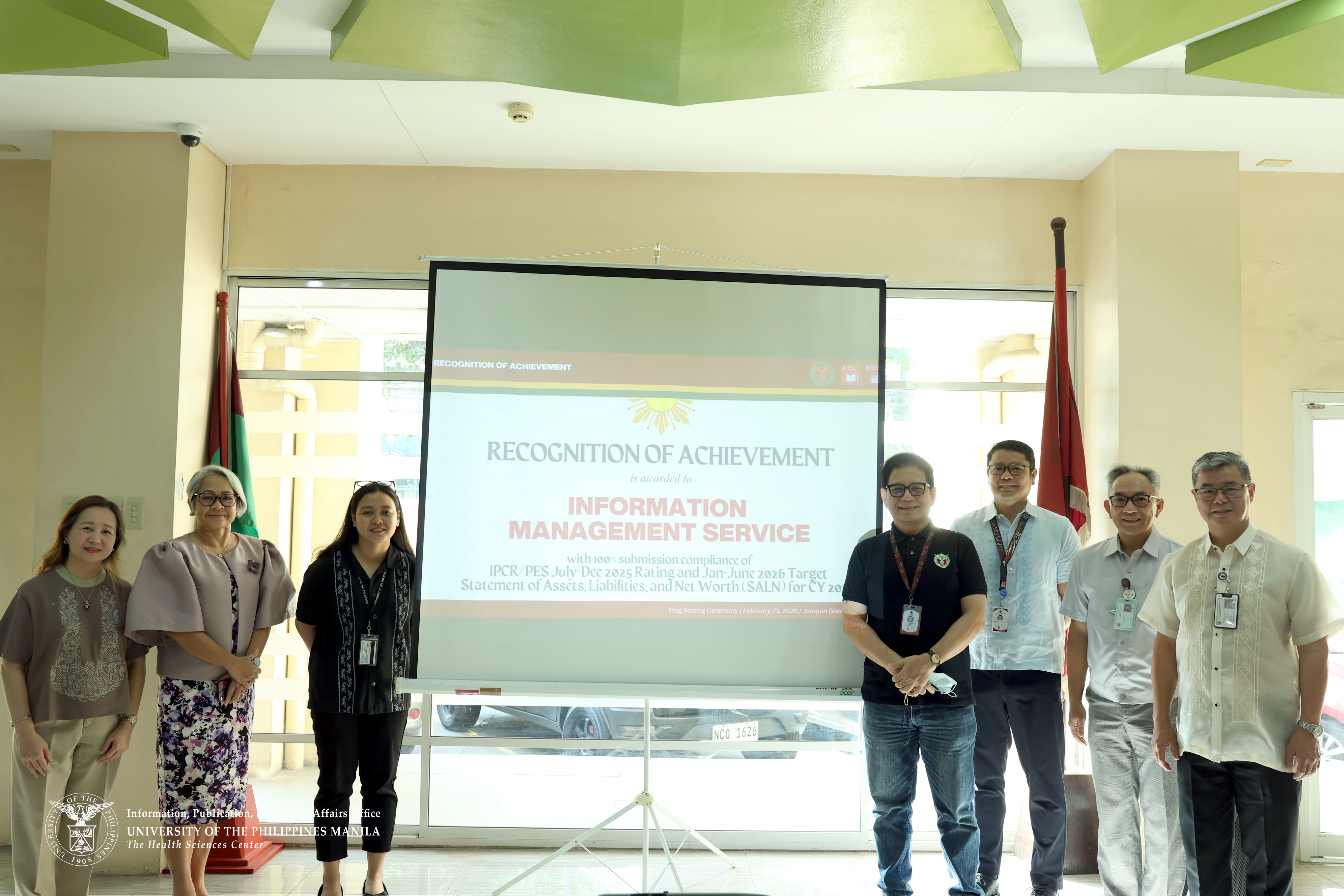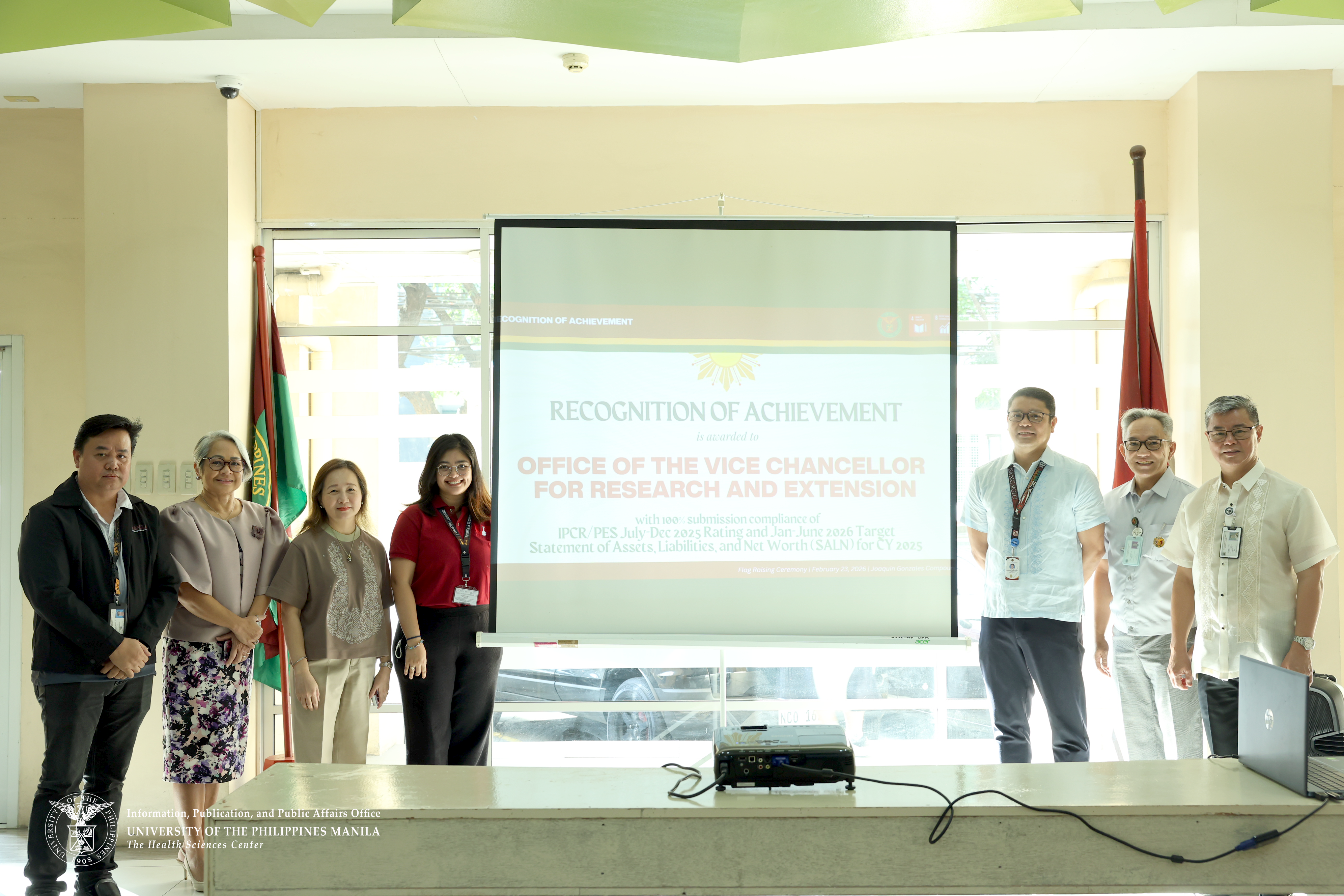 The University of the Philippines Manila Human Resource Development Office (HRDO) recognized outstanding offices and personnel during the Feb. 23, 2026, Flag Raising Ceremony held at the Joaquin Gonzales Compound, honoring units with full compliance in key administrative submissions and employees who demonstrated exceptional commitment to professional development.