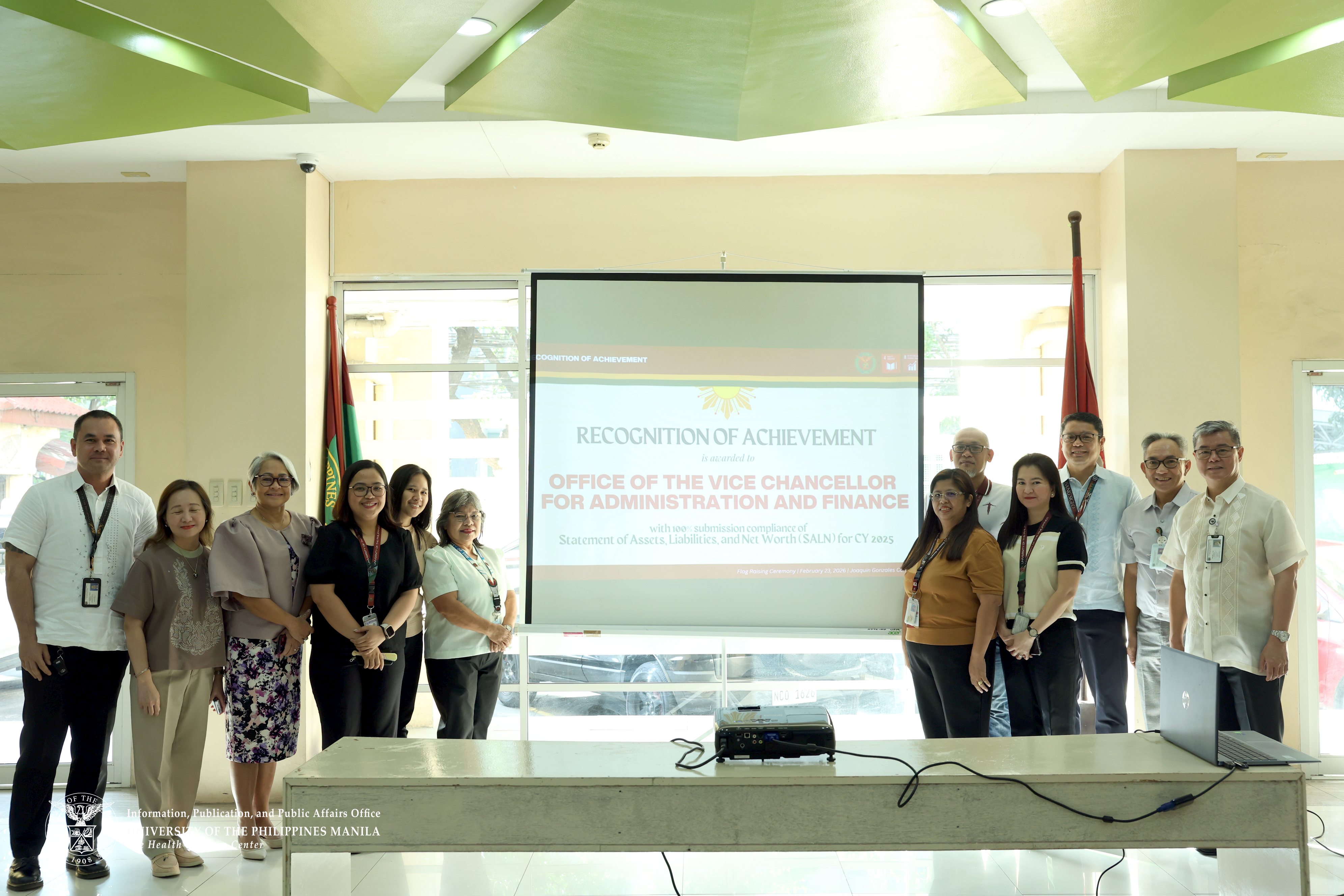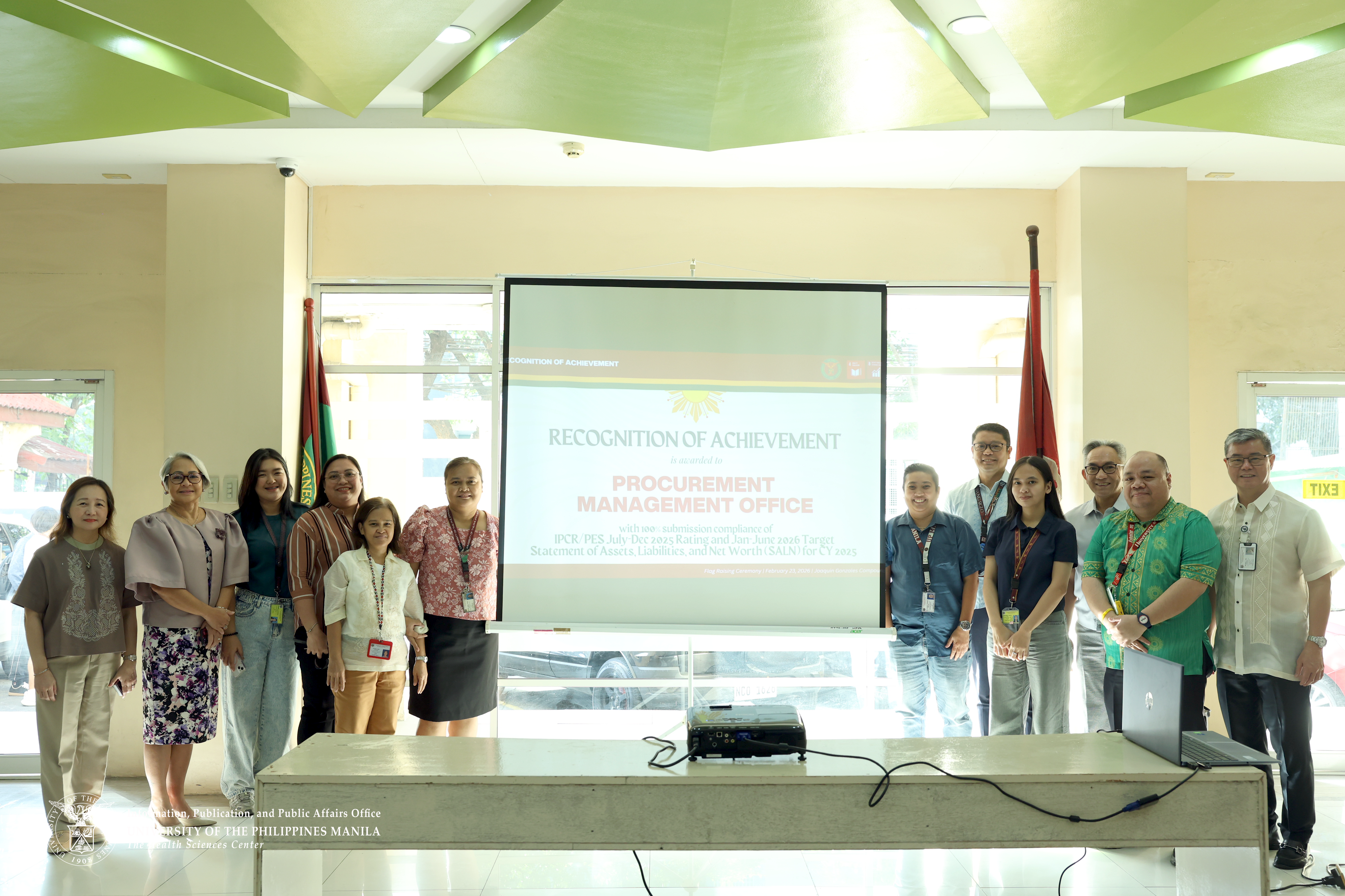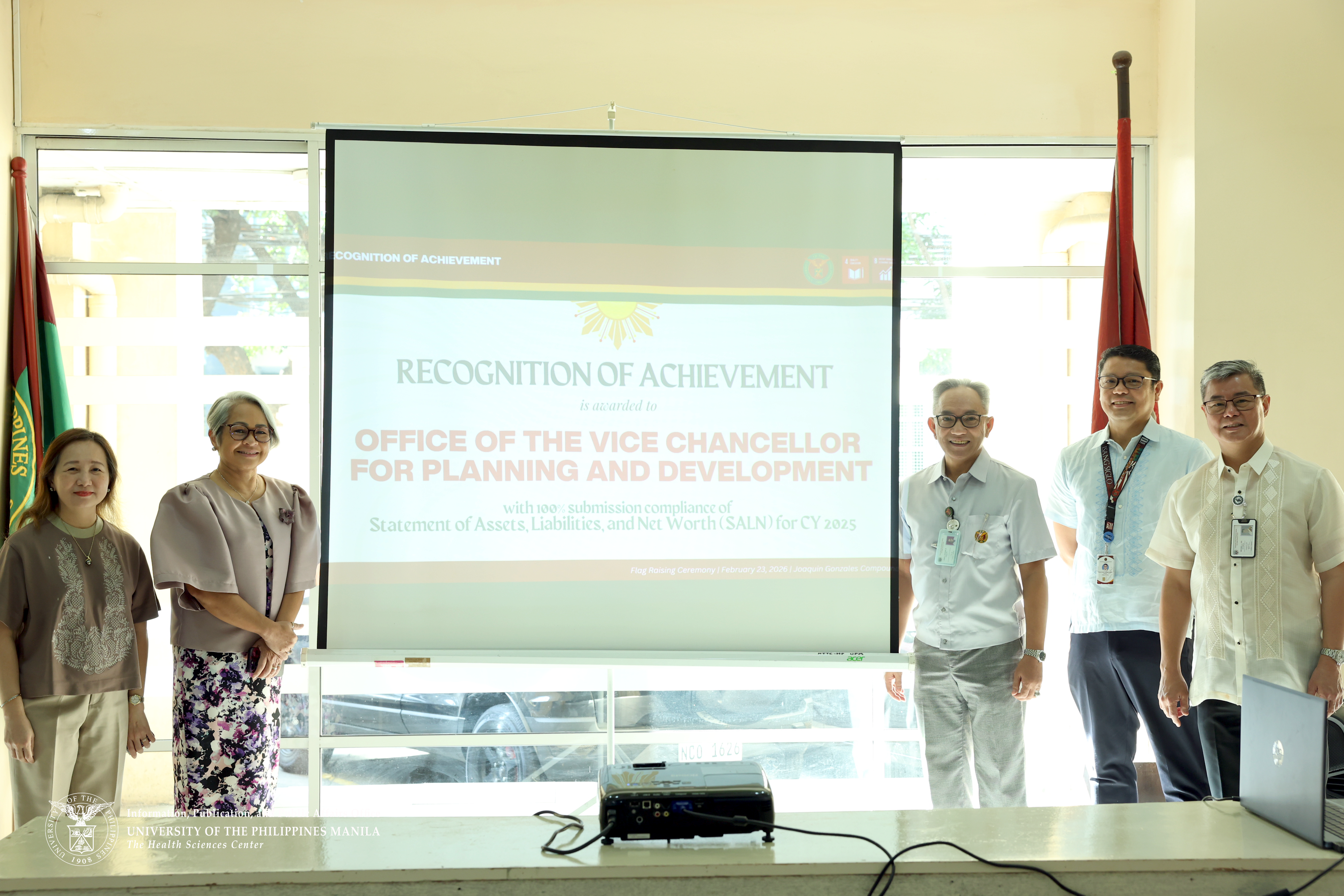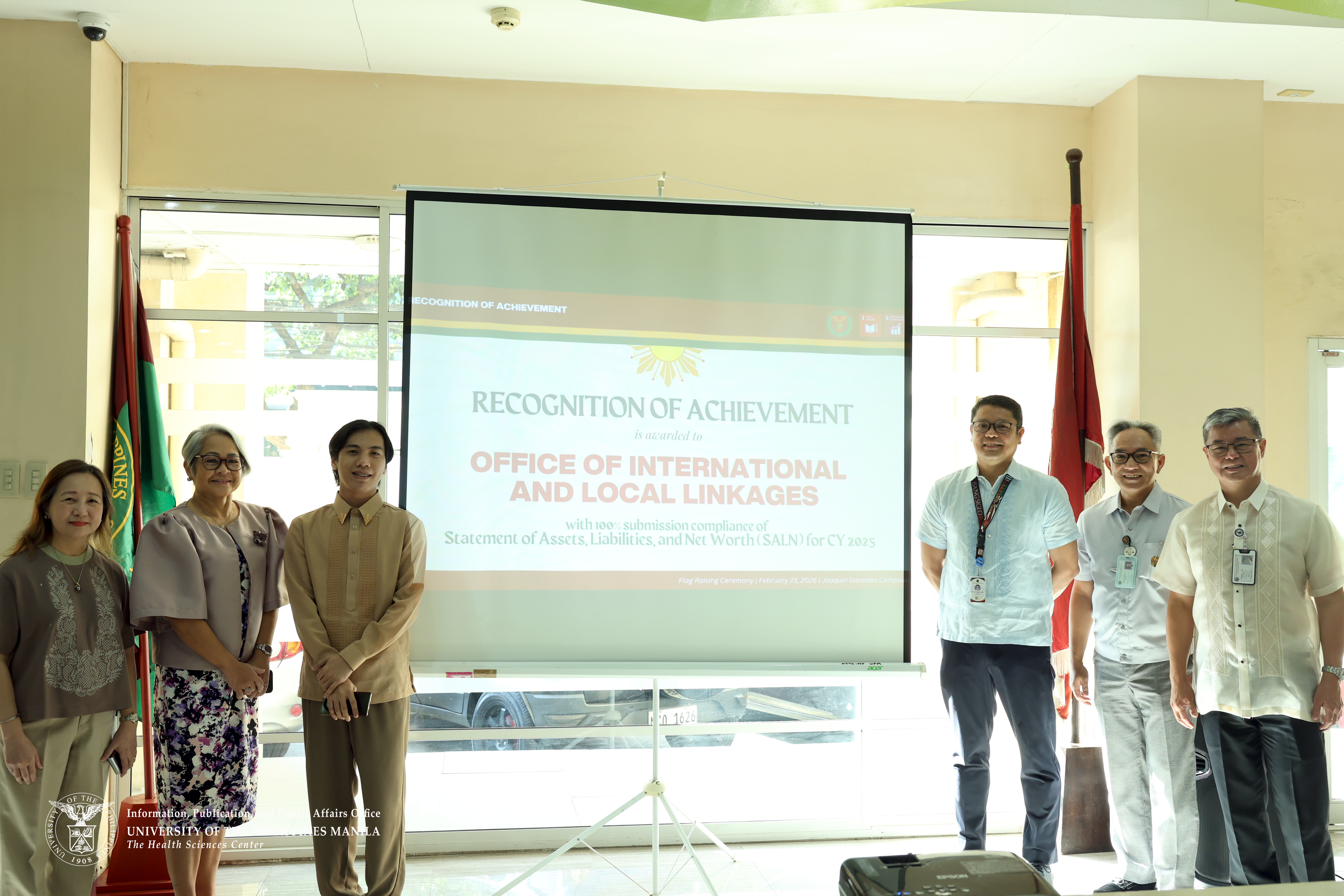 The University of the Philippines Manila Human Resource Development Office (HRDO) recognized outstanding offices and personnel during the Feb. 23, 2026, Flag Raising Ceremony held at the Joaquin Gonzales Compound, honoring units with full compliance in key administrative submissions and employees who demonstrated exceptional commitment to professional development.