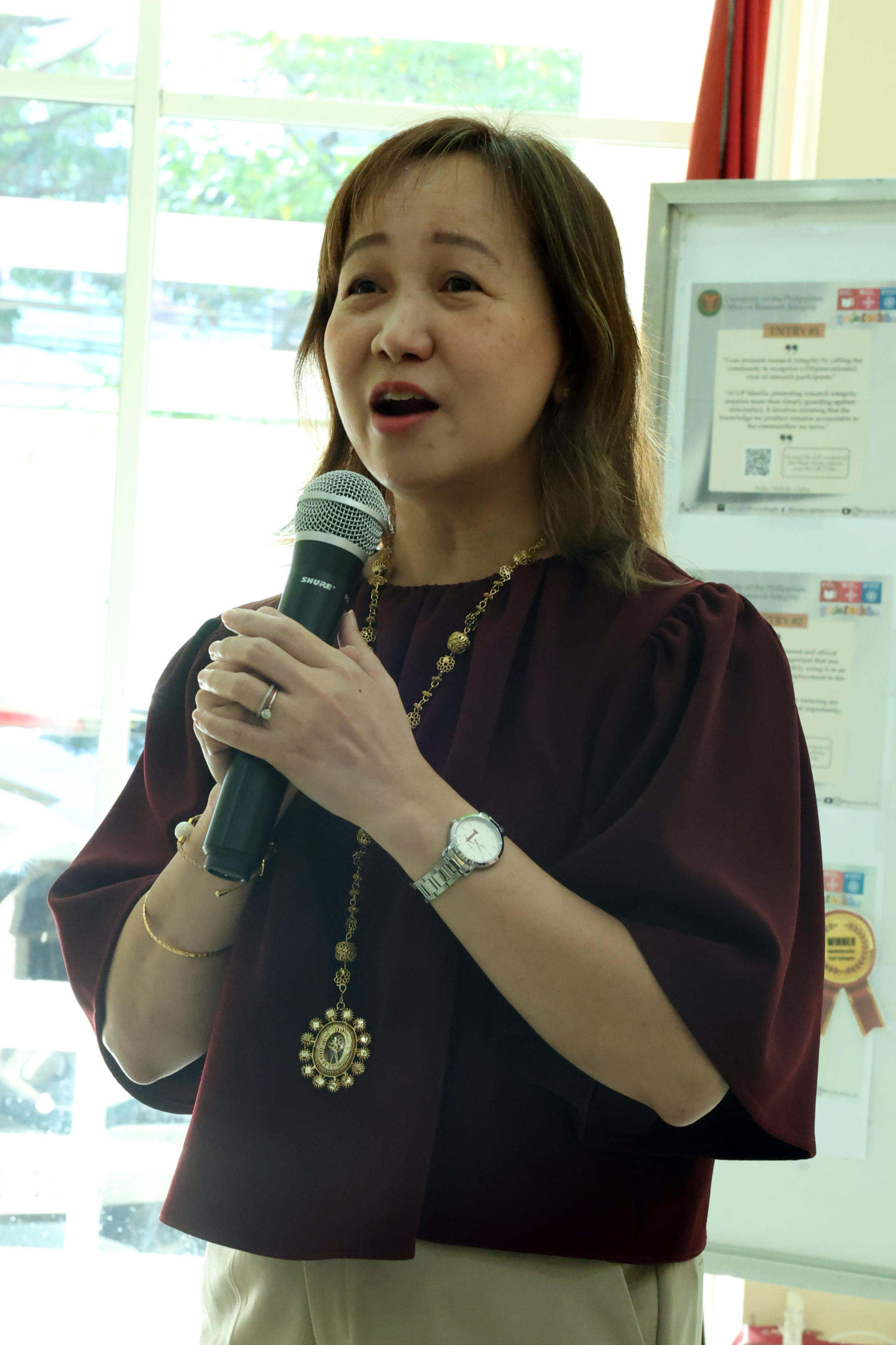 Vice Chancellor for Research and Extension Dr. Leslie Michelle Dalmacio encouraged the community to carry integrity beyond research. “Nawa’y hindi lamang ‘yung integrity sa research ang ating i-uphold, kundi integrity sa lahat ng ating ginagawa.”