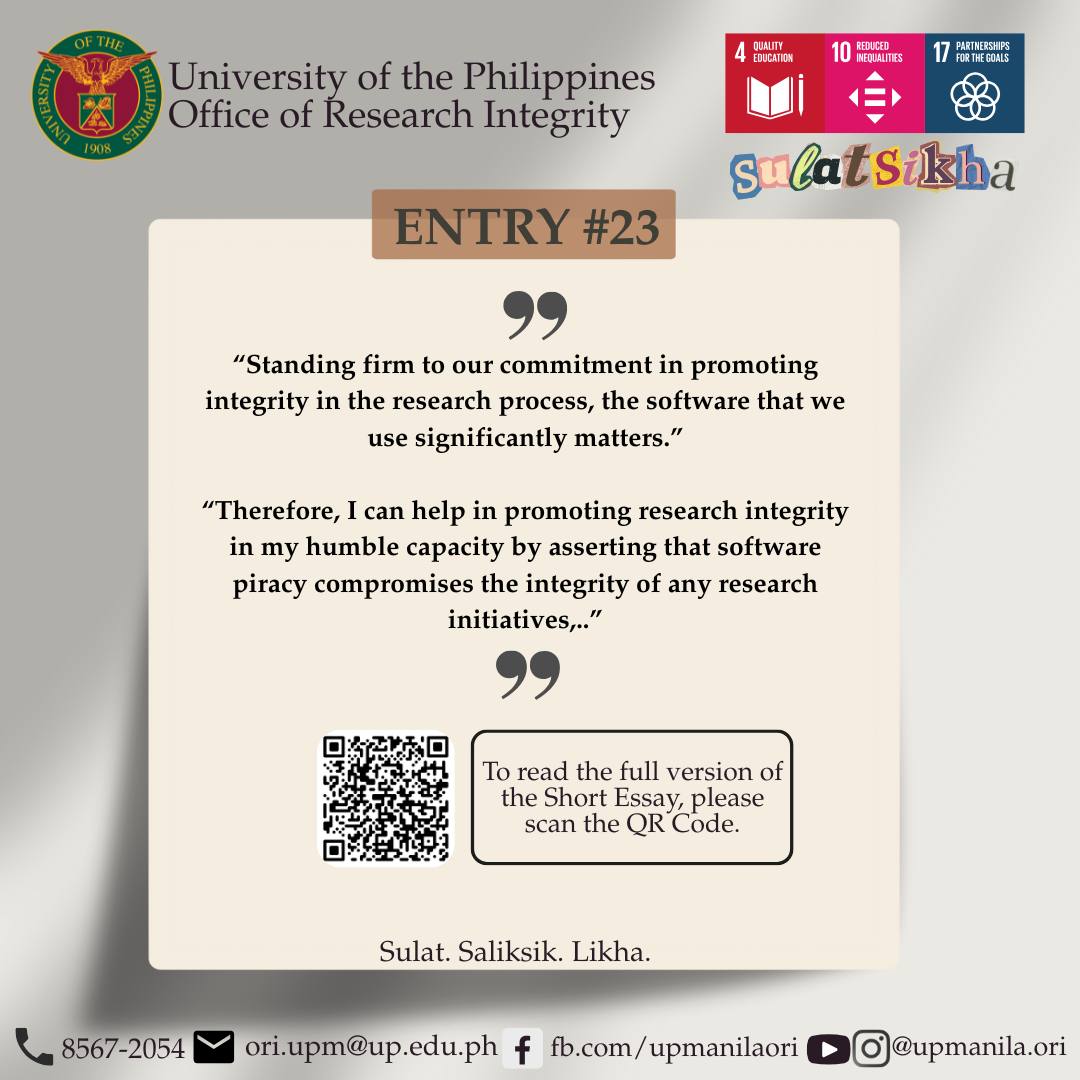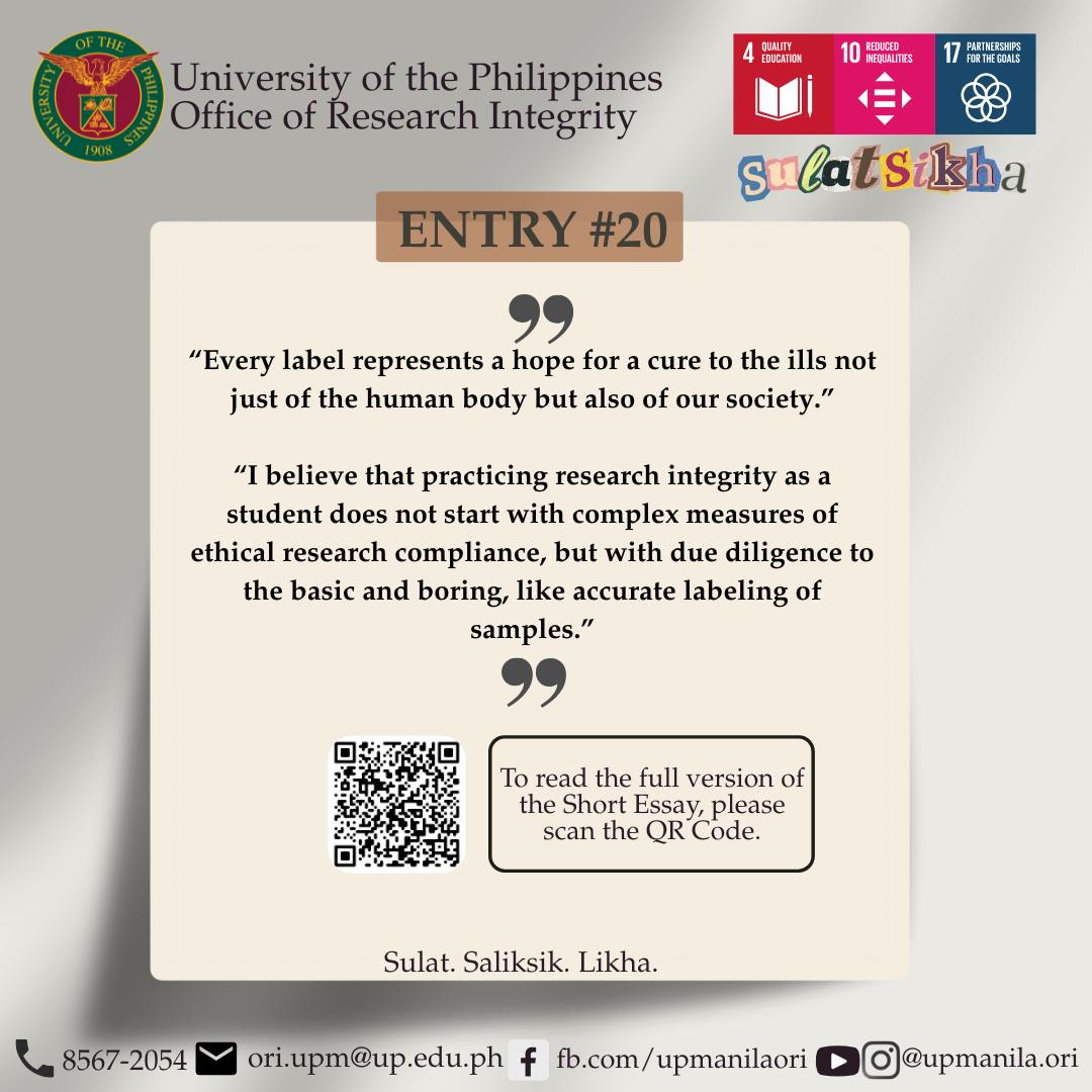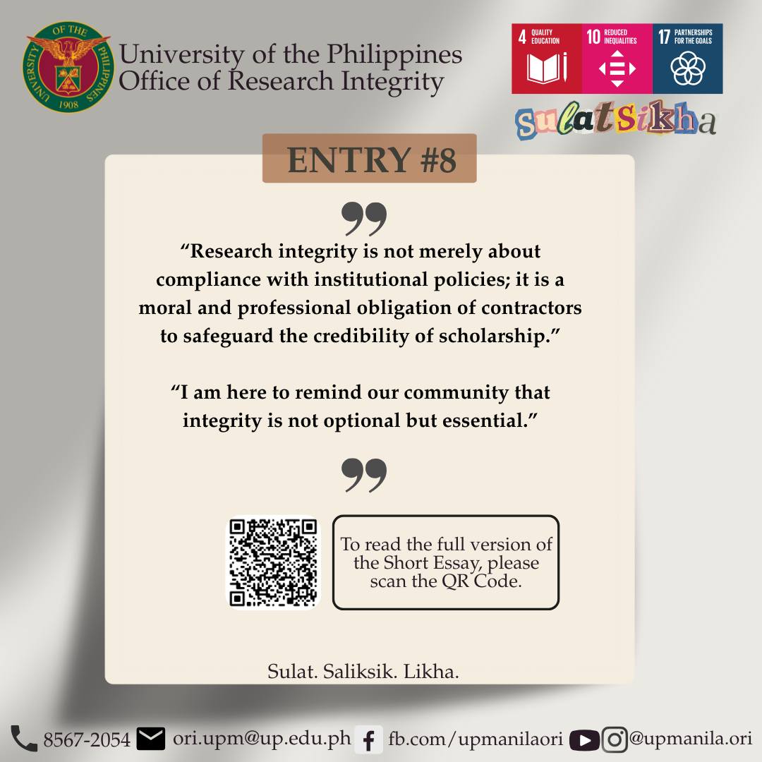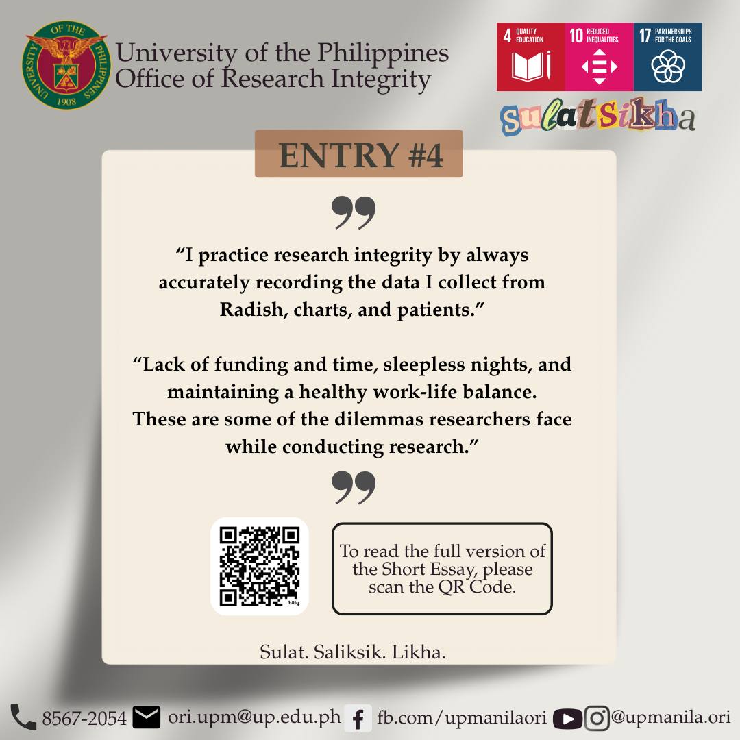 Themed “Promoting Research Integrity – A UP Manila Commitment,” the event underscored the university’s continuing advocacy for ethical and responsible research, the SulatSikha competition drew 24 entries across the UP Manila community—including administrative staff, students, faculty, REPS, and PGH nurses—each reflecting on the importance of integrity in research and scholarship.