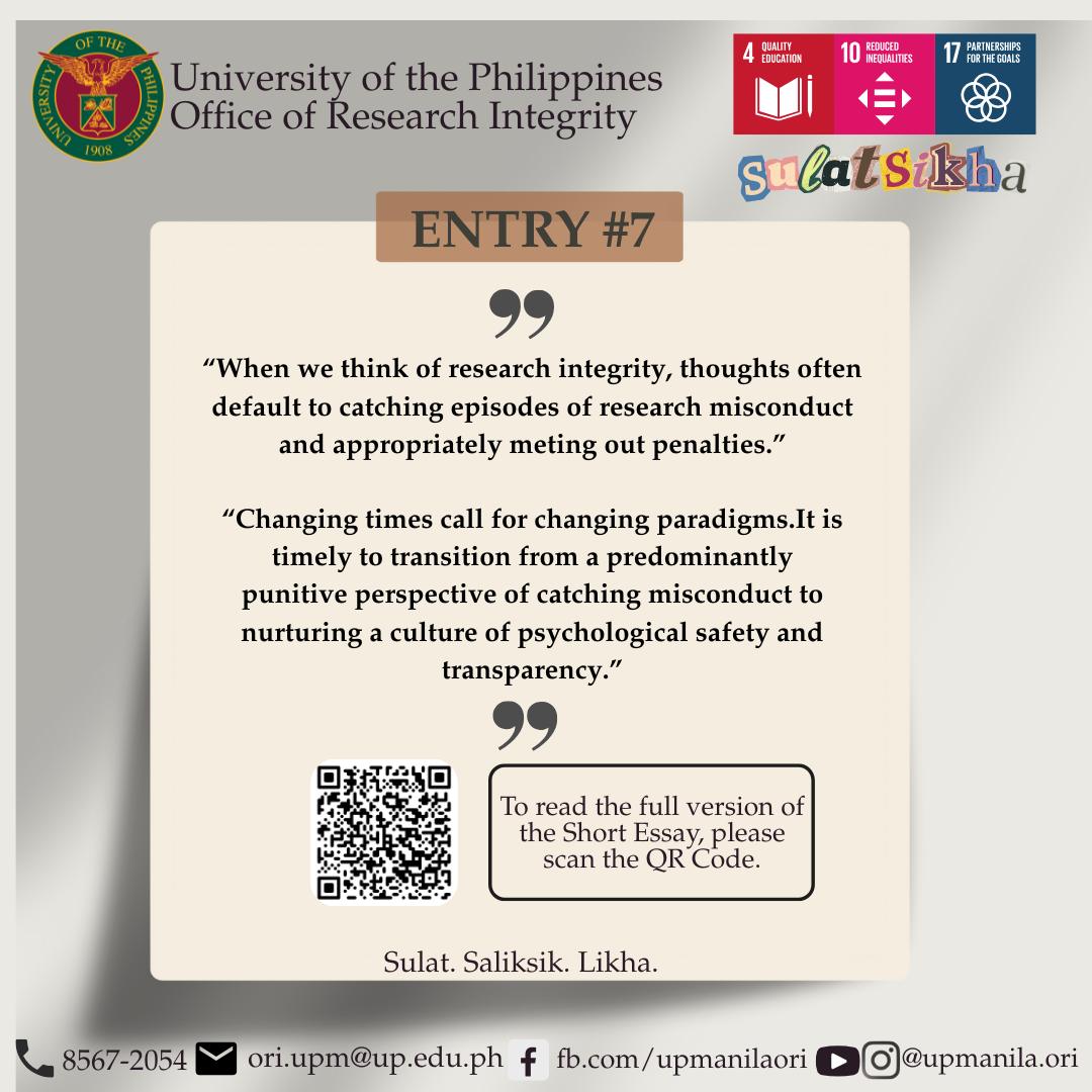 UP Manila Chancellor Michael Tee expressed his appreciation for ORI’s efforts and stated, “Congratulations to the Office of Research Integrity para sa inyong anim na taon na pagtataguyod ng ating kultura ng honor and excellence lalo na sa research.” He also commended the winners of SulatSikha for inspiring the community to uphold ethical practices in research and scholarship.