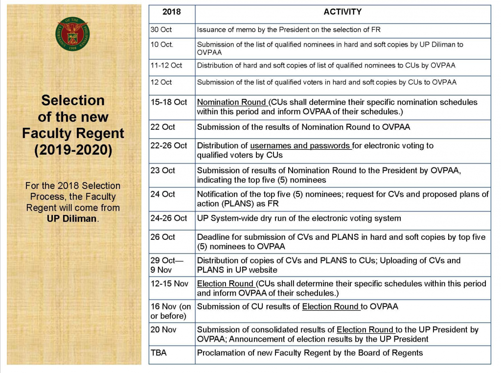 PDLC Memo No. 18-44: “Selection of the new Faculty Regent (2019-2020)”