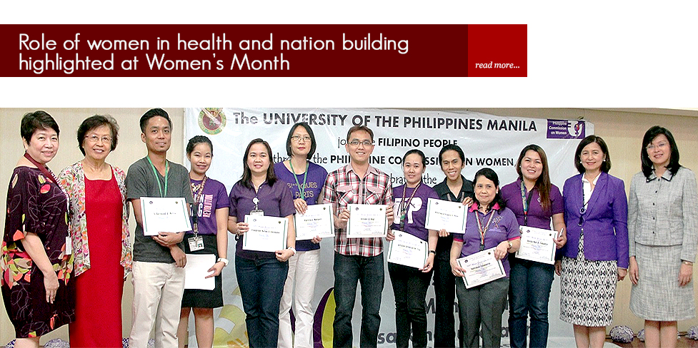 With “Women’s Role in Participation and Decision Making in all Aspects of Society: Juana, Desisyon mo ay Mahalaga sa Kinabukasan ng Bawat Isa, Ikaw Na!” as theme for this year’s Women’s Month celebration, UP Manila adopted a sub theme according to its role as the country’s premier health institution. The subtheme was “Recognizing the Power of the Women’s Sector and its Role in Health and Development and in Nation Building.”