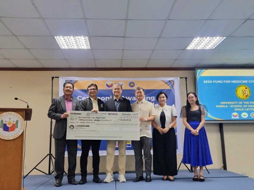Chancellor Michael L. Tee and UP Manila School of Health Sciences Dean Charlie E. Labarda received the grant on behalf of UP Manila.