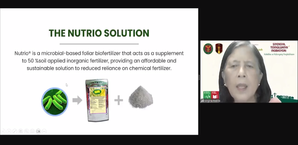 Dr. Virginia Padilla, founder of Fullmight Agricultural Corp., a spin-off from the University of the Philippines Los Baños (UPLB), introduced Nutrio, a bio-fertilizer designed to enhance crop yield sustainably. She shared her company’s mission: “We aim to inspire the next generation to value natural resources while ensuring food security for the future.”
