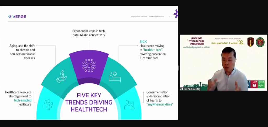 Mr. Carl Ng, managing partner of Verge HealthTech Fund, highlighted the importance of venture capital in scaling health technologies globally. He mentioned five key trends driving health tech innovation, emphasizing how aging populations and the rising prevalence of chronic and non-communicable diseases demand tech-enabled solutions. He noted that resource shortages in healthcare systems globally are accelerating the adoption of technology, while advancements in data, AI, and connectivity continue to expand possibilities. The shift from reactive “sick care” to proactive “health + care” focuses on prevention and chronic care management, complemented by the consumerization and democratization of health services, enabling access “anywhere, anytime.” These trends, driven by the increasing role of technology, are reshaping healthcare to improve efficiency, accessibility, and outcomes.