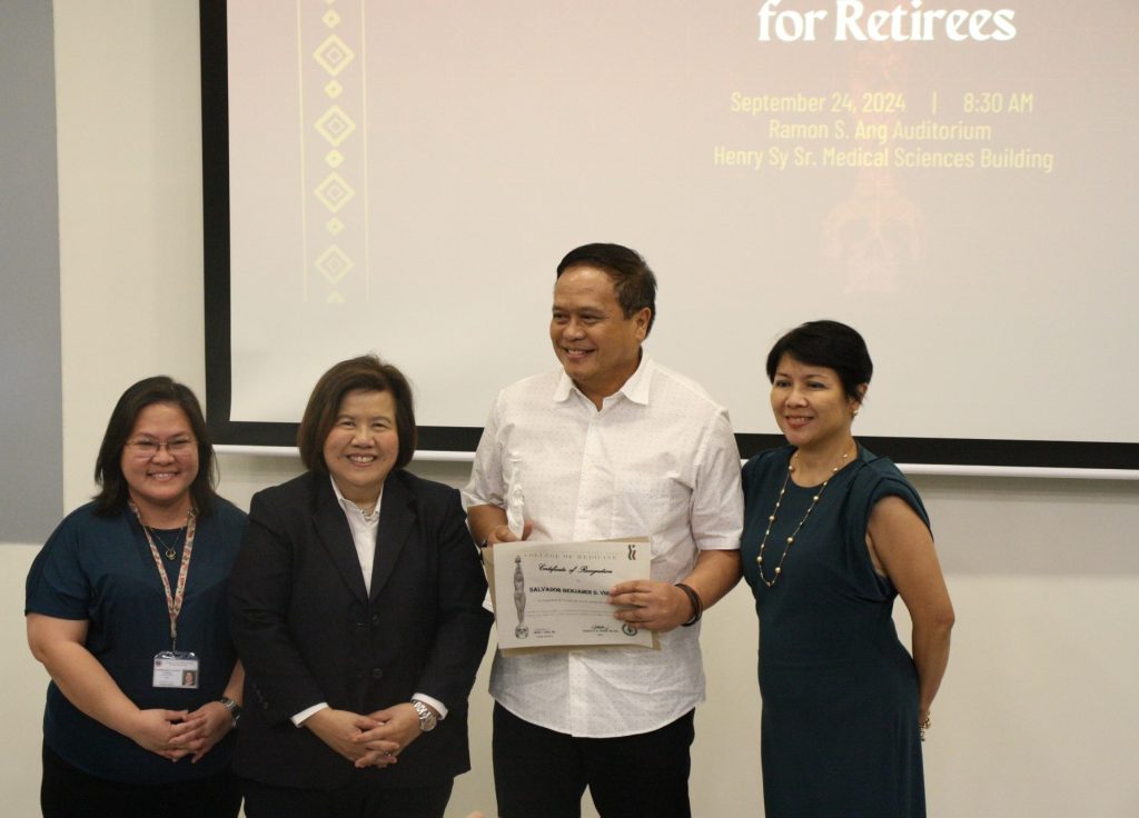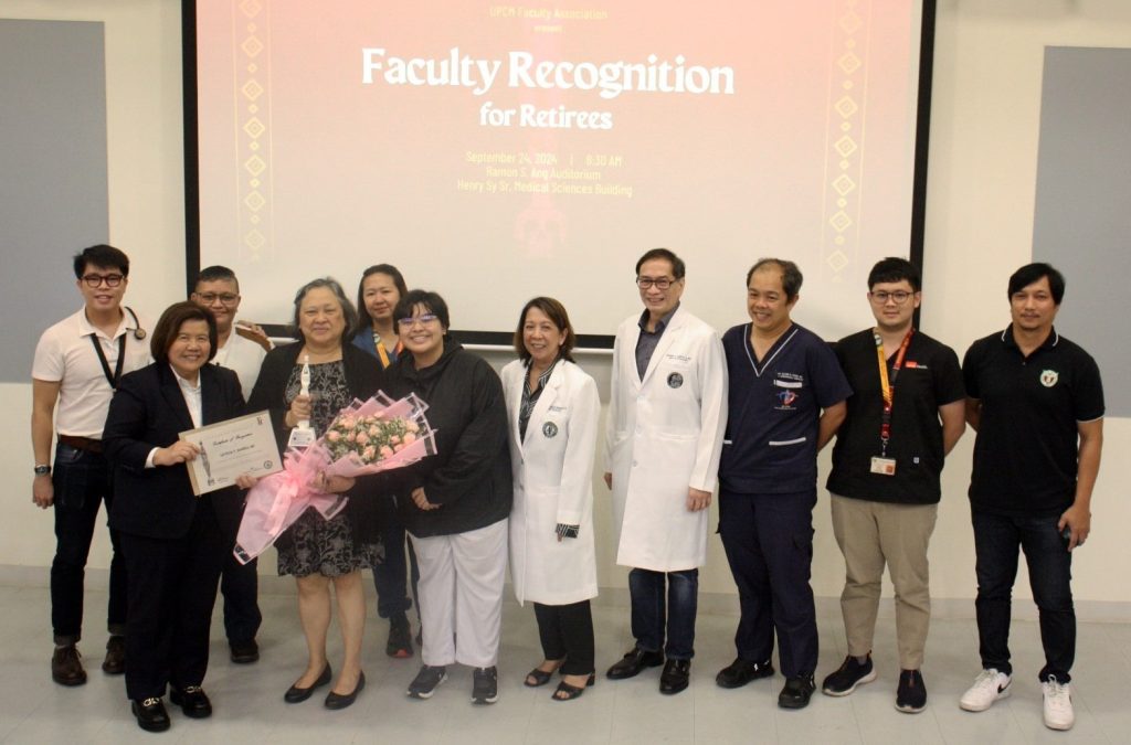 UPCM faculty retirees honored were: Arlene A. Samaniego (Department of Anatomy), Edgard M.Simon (Department of Anesthesiology), Benjamin Daniel S. Valera (Department of Anesthesiology), Jerry M. Obaldo (Department of Medicine), Wilfred G. Dee (Department of Medicine), Stella Marie L. Jose (Department of Obstetrics & Gynecology), Jose Manuel F. Ignacio (Department of Orthopedics), Edward H.M. Wang (Department of Orthopedics), Jose Florencio Jr. F. Lapeña (Department of Otolaryngology-Head & Neck Surgery), Olympia Q. Malanyaon (Department of Pediatrics), Carmencita D. Padilla (Department of Pediatrics), Edison T. Ty (Department of Pediatrics), Leticia T. Ibañez (Department of Physiology), Salvador Benjamin D. Vista (Department of Psychiatry), and Gerardo G. Germar (Department of Surgery) and UPCM administrative staff retiree was Generozo Z. Dela Paz.
