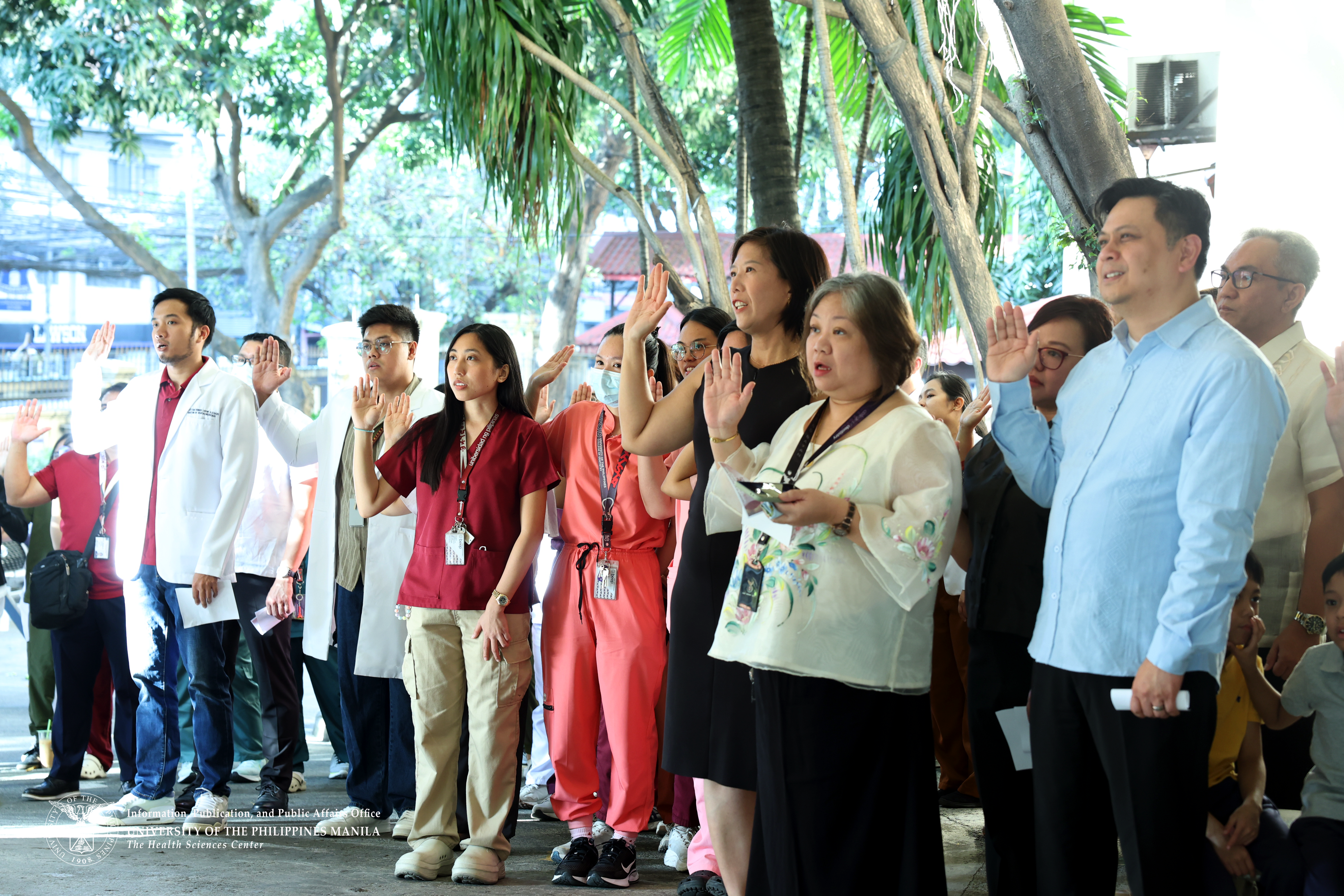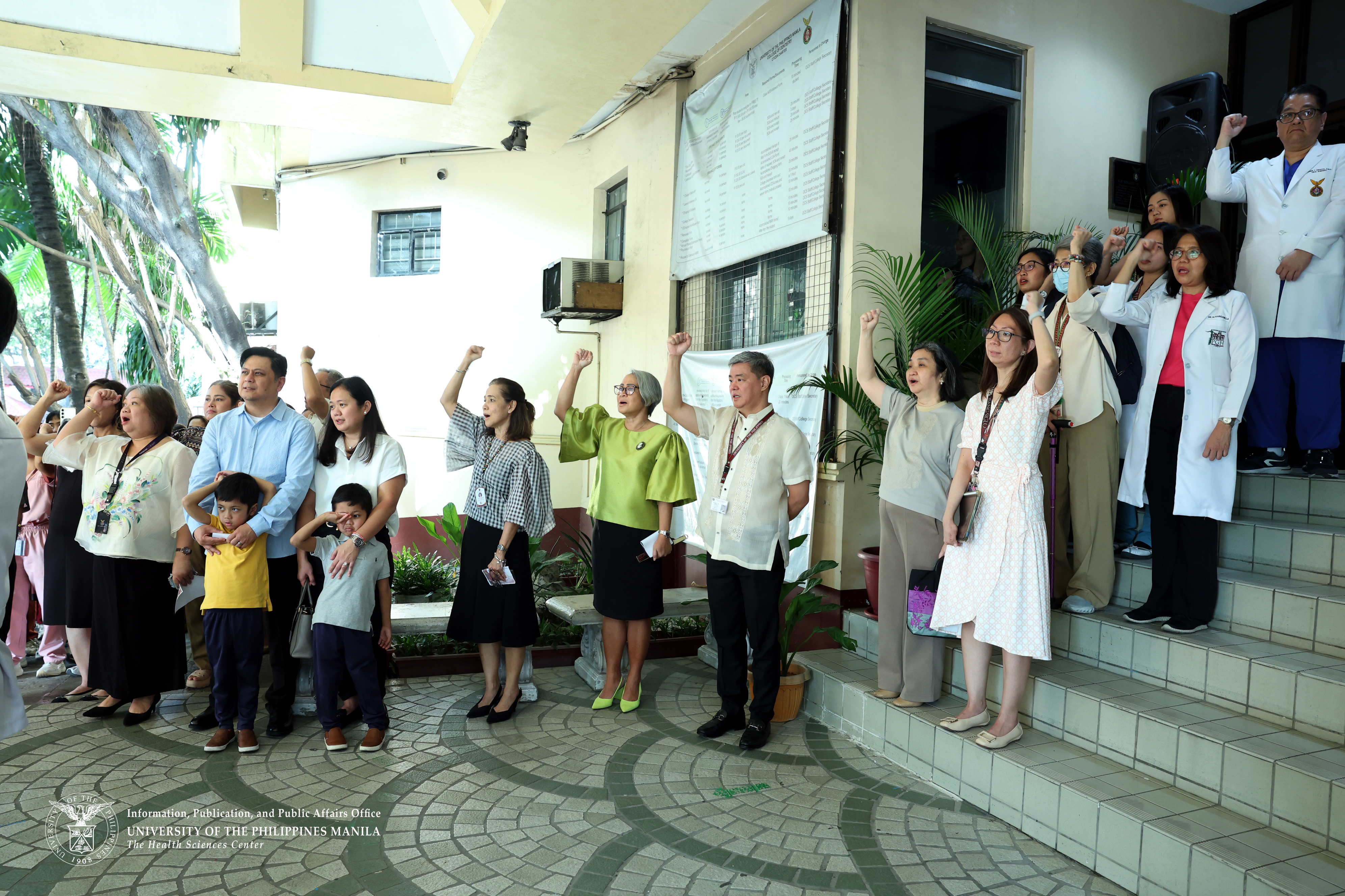 UP College of Dentistry officials, faculty, staff, students, and alumni gather for a group photo during the flag-raising ceremony that opened the one-week celebration of the College’s 111th founding anniversary.