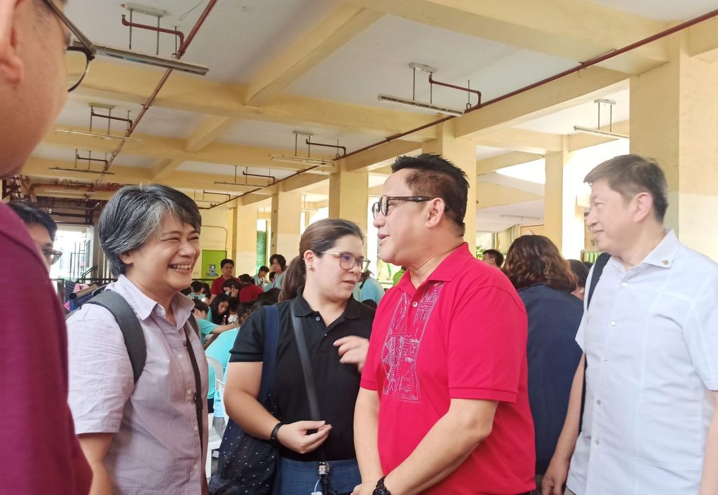 President Jimenez and Vice President for Academic Affairs Leo Cubillan meet with UP Manila delegates during the vision screening project at Krus na Ligas Elementary School.