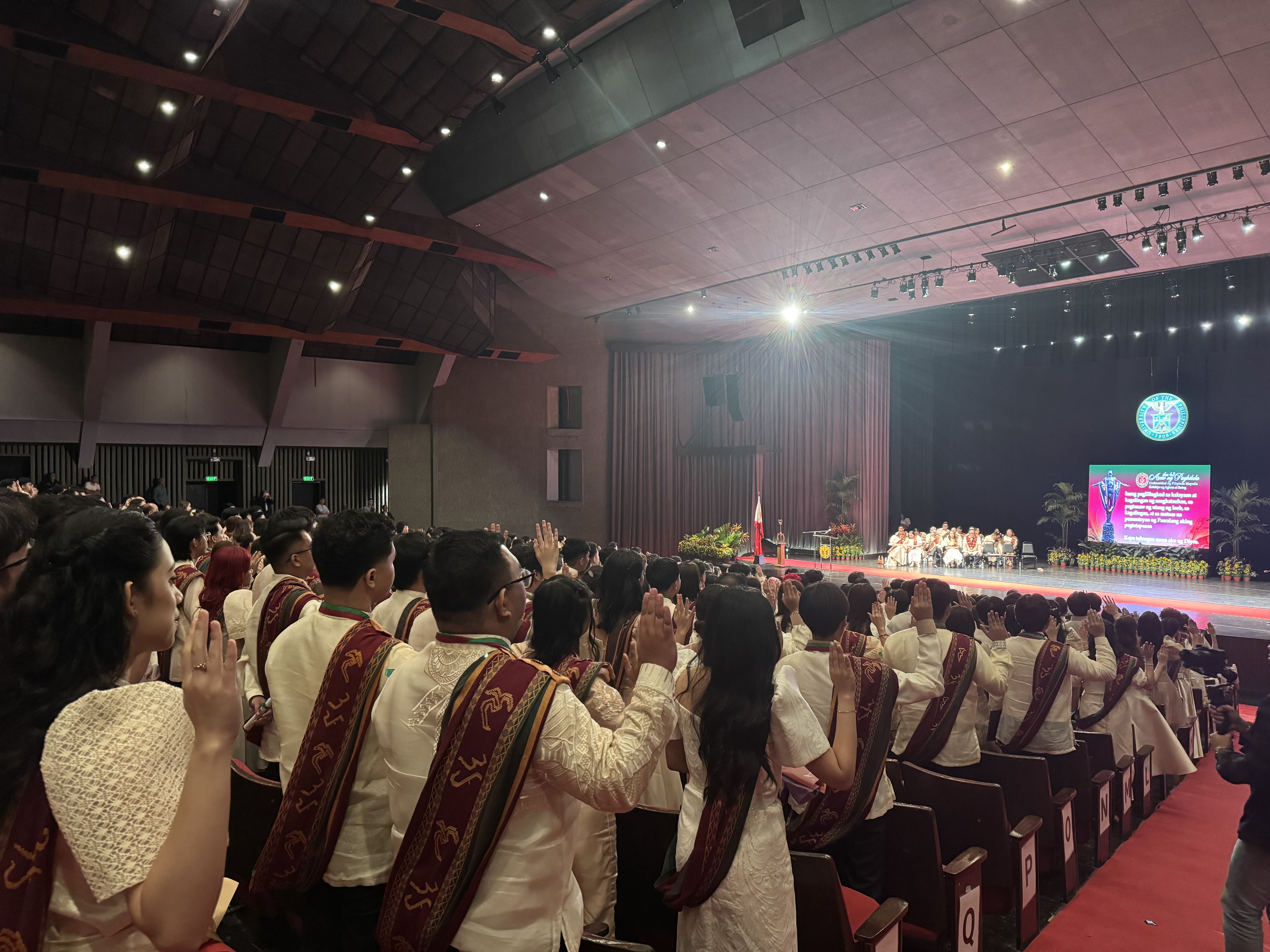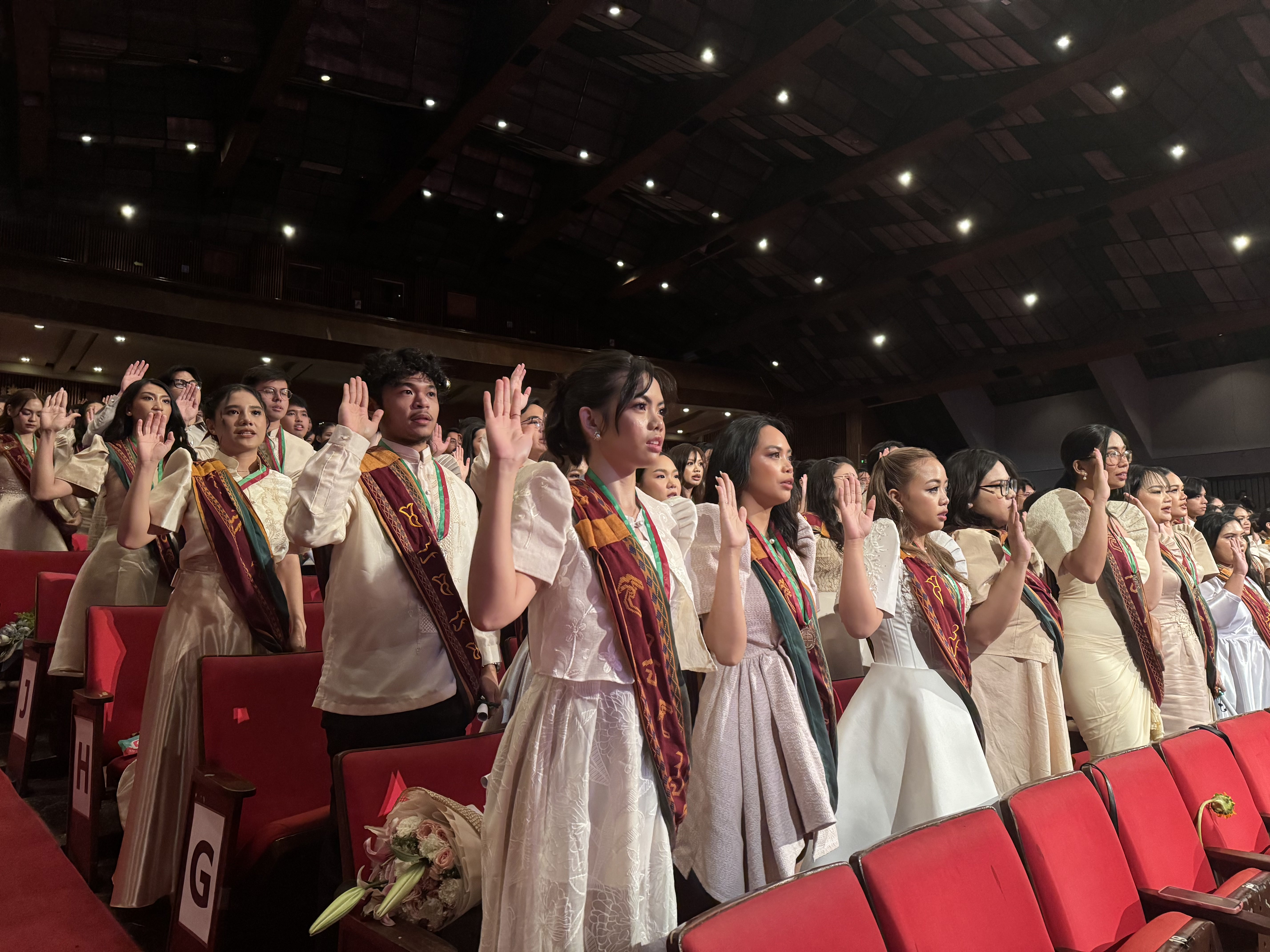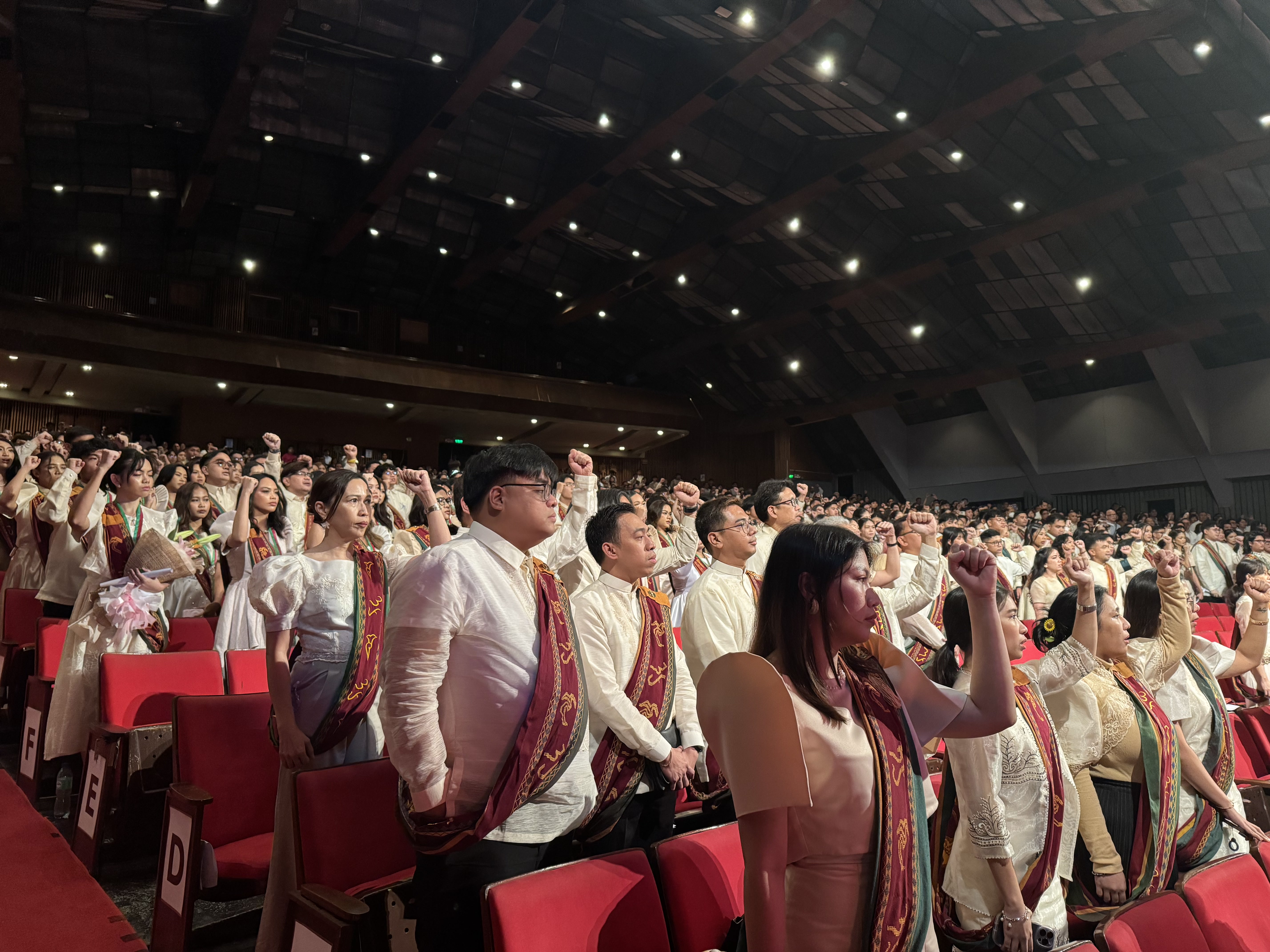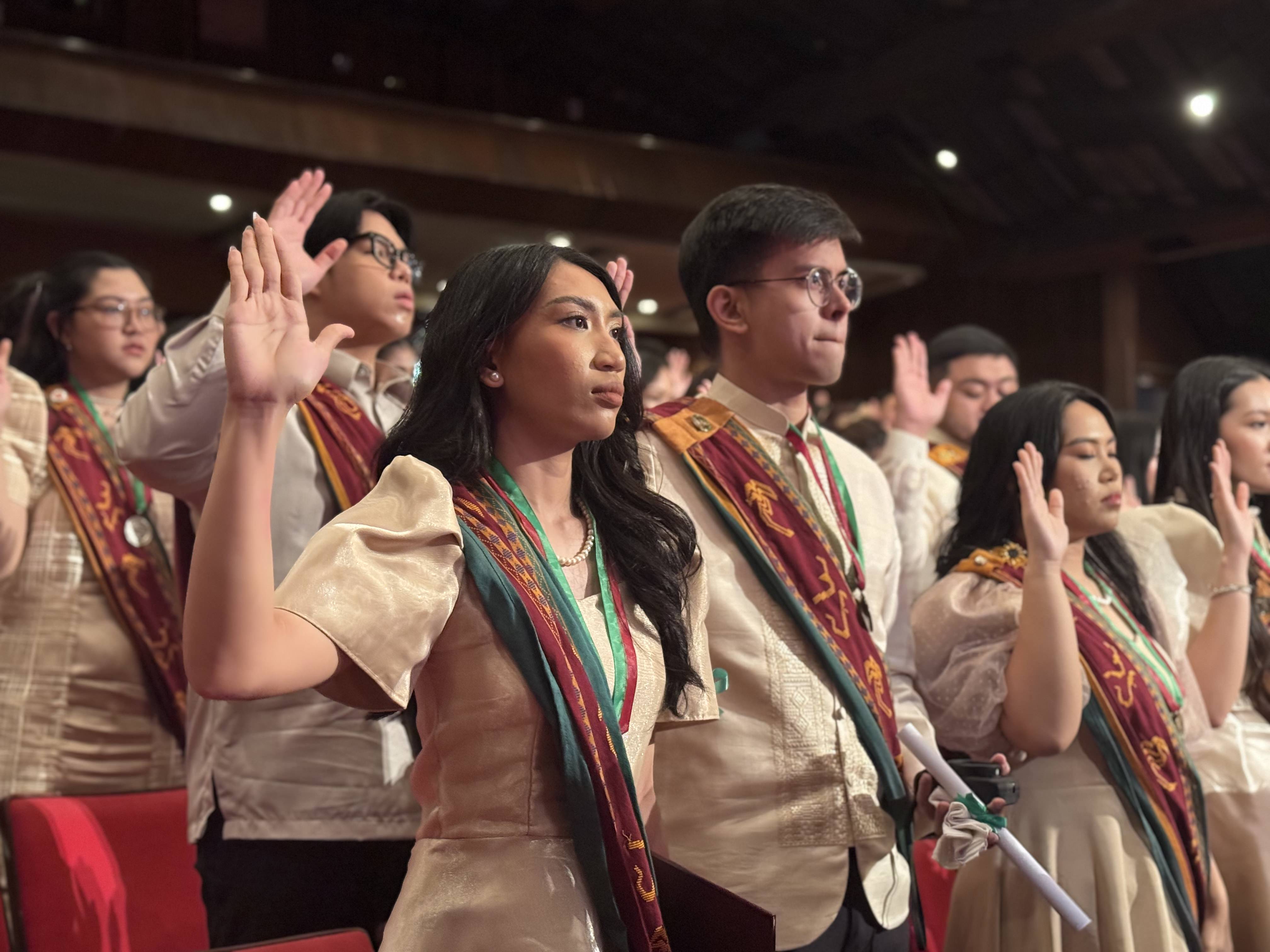 “Buong puso, for giving your all not just to learn, but to understand, care, and serve; Husay, for striving for excellence even in the most difficult times; and Dangal, for upholding integrity, humility, and the values instilled in you by the University,” she said.