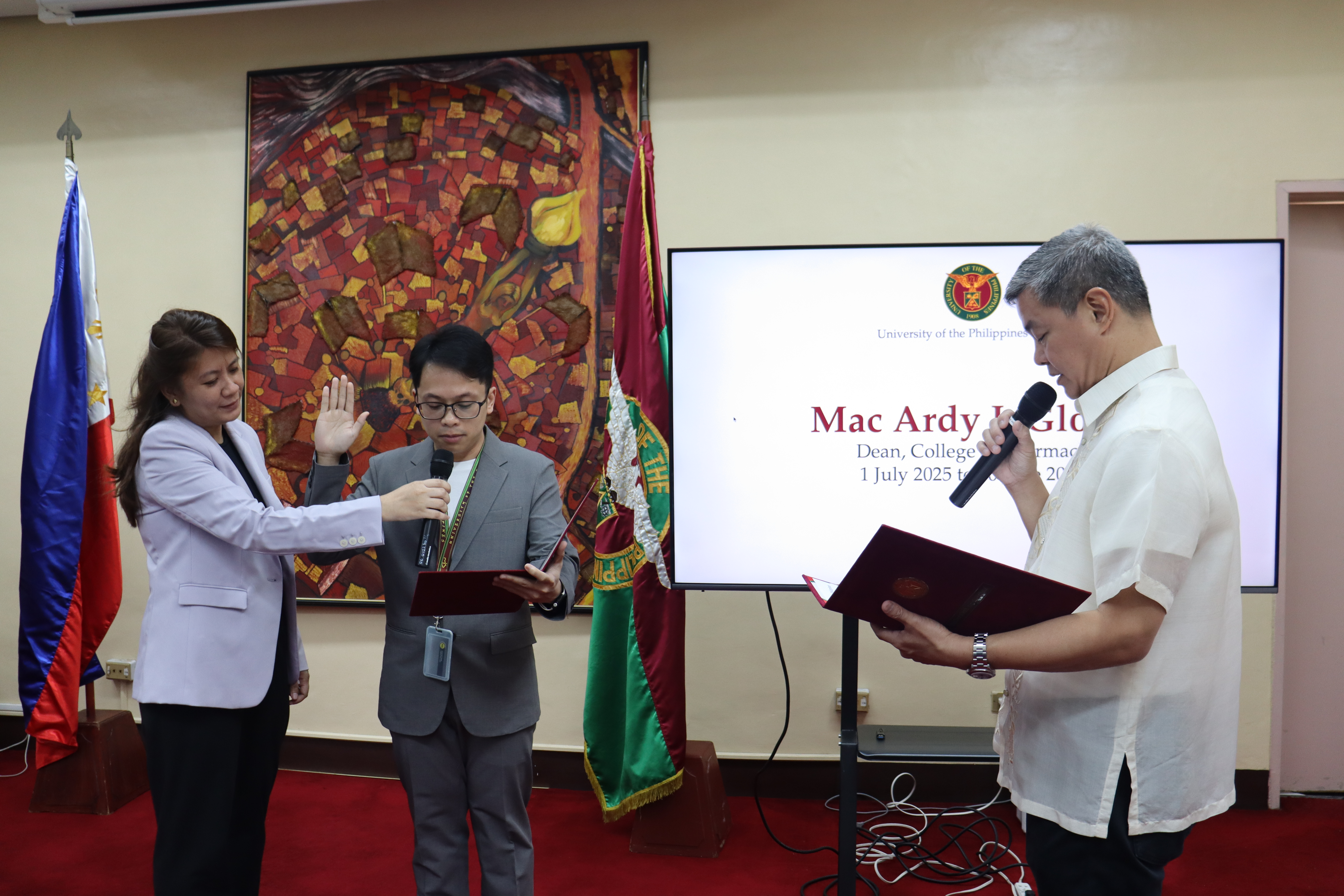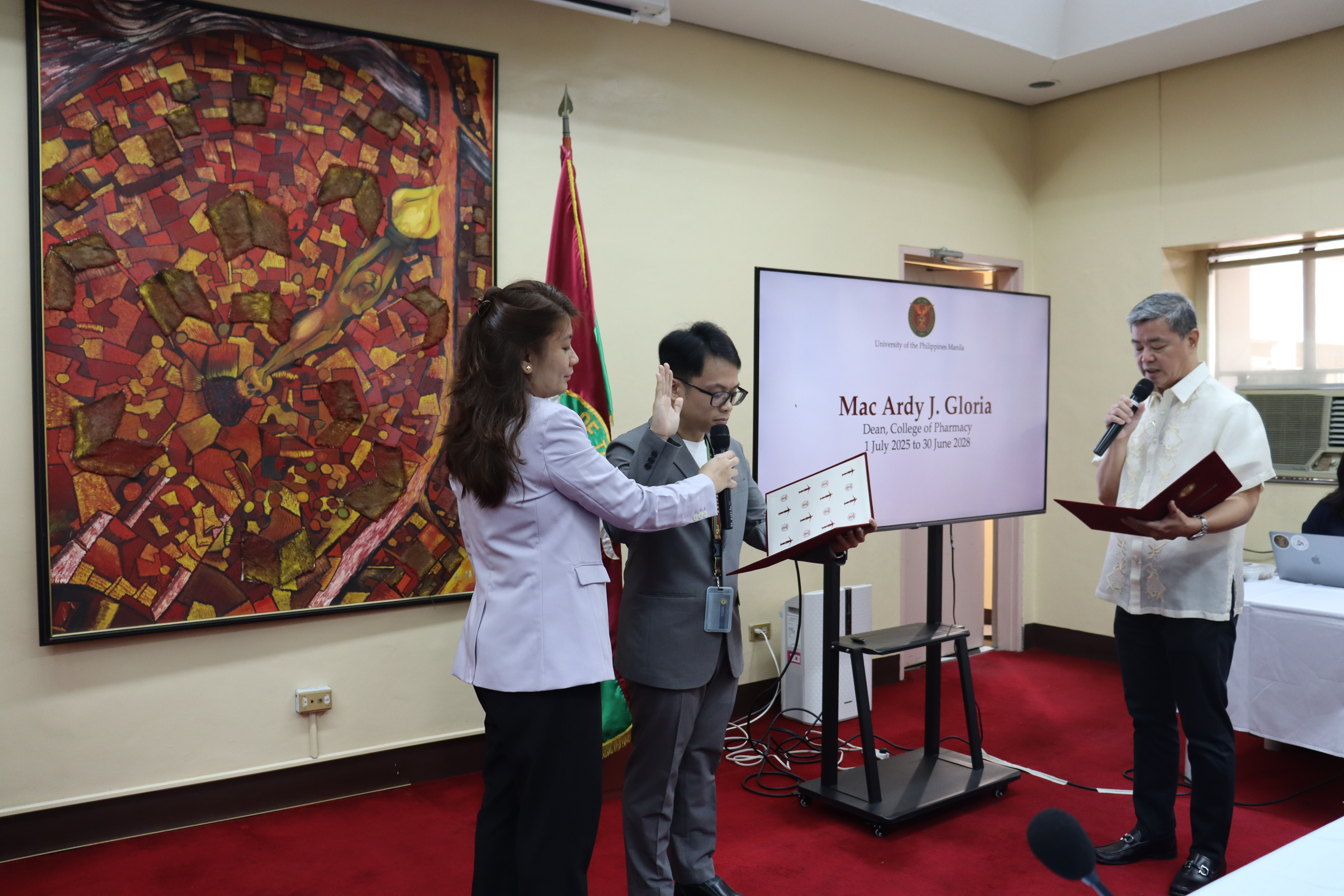 Among those who took their oaths were Dr. Mac Ardy G. Gloria as Dean of the College of Pharmacy, Atty. Ruel B. Nario as Chief Legal Officer, and Dr. April B. Llaneta as Acting Director of Ugnayan ng Pahinungod Manila.