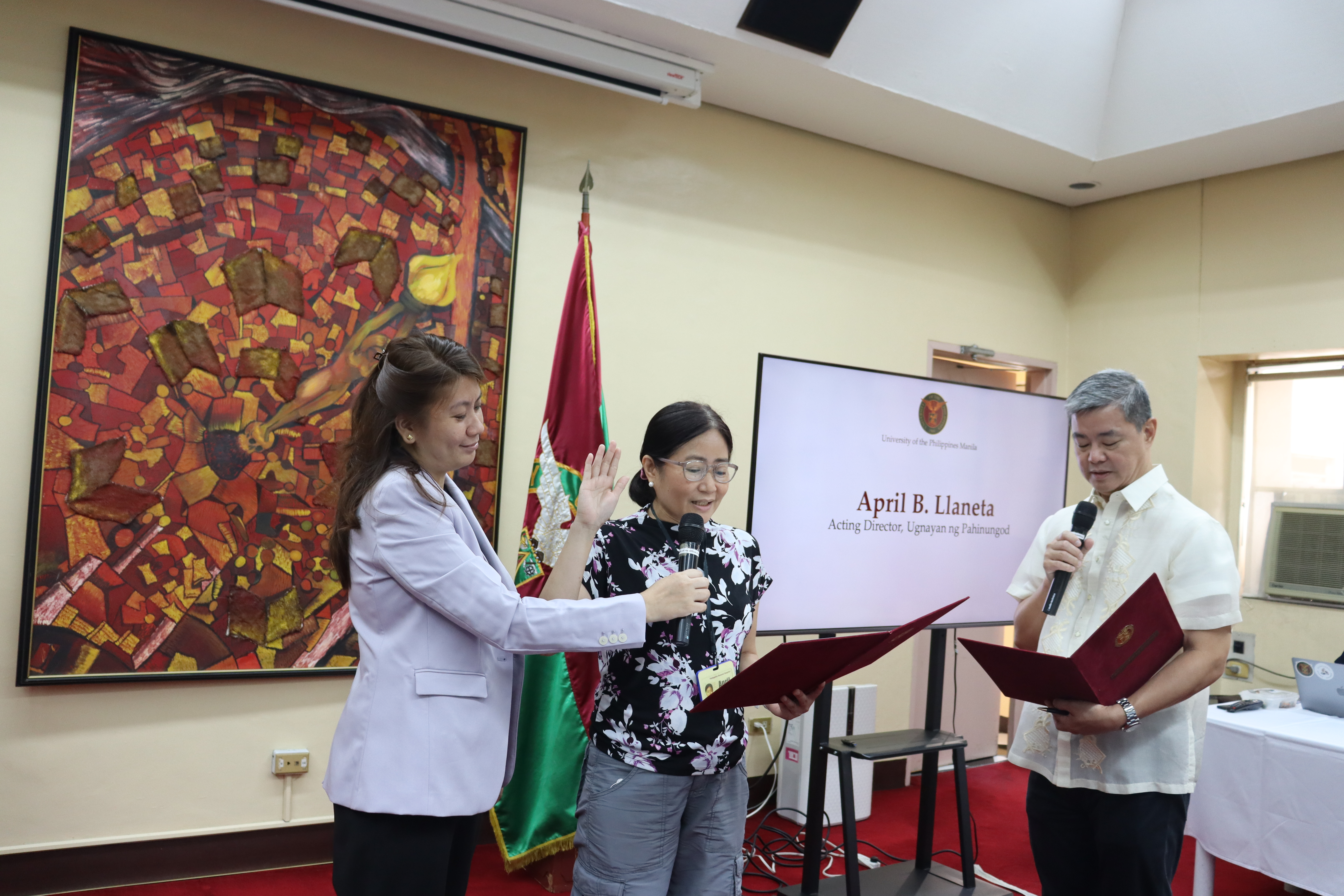 Dr. April B. Llaneta was appointed Acting Director of Ugnayan ng Pahinungod Manila, effective from May 5 to September 4, 2025. An Associate Professor and former chair of the UP PGH Department of Emergency Medicine, Dr. Llaneta brings extensive experience in disaster preparedness and emergency response. She is also the founding president of the newly established Outdoor Medicine Association of the Philippines, which advocates for emergency care education among outdoor sports enthusiasts, community responders, and other emergency care providers.