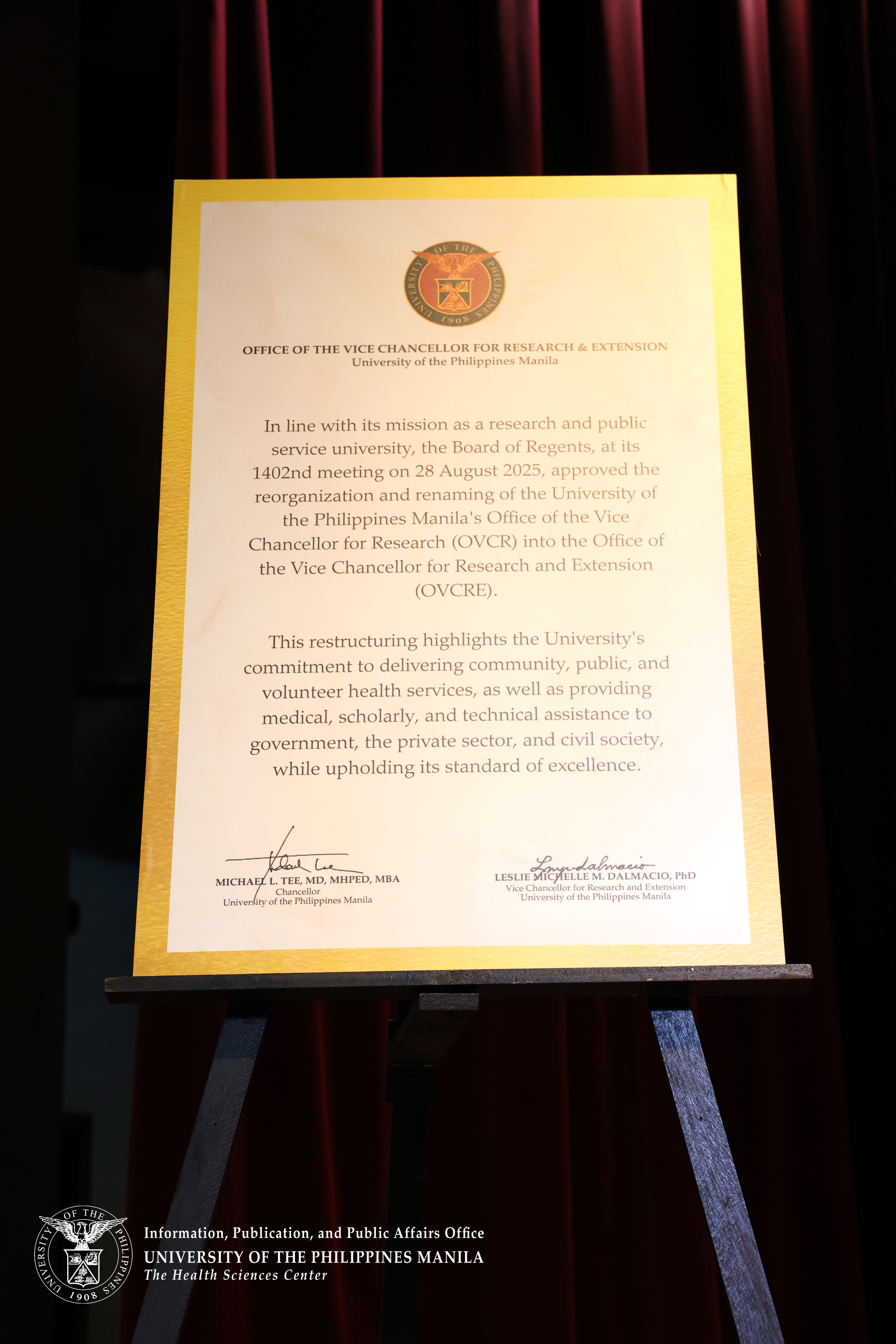 The University of the Philippines Manila opened its 2025 Foundation Celebration month with the reintroduction of the newly renamed Office of the Vice Chancellor for Research and Extension (OVCRE), a milestone event underscoring the university’s continuing commitment to advancing research, innovation, and public service as the nation’s Health Sciences Center. The event was held on October 6, 2025, during the flagraising ceremony at the UP Manila Theater, College of Arts and Sciences (CAS).