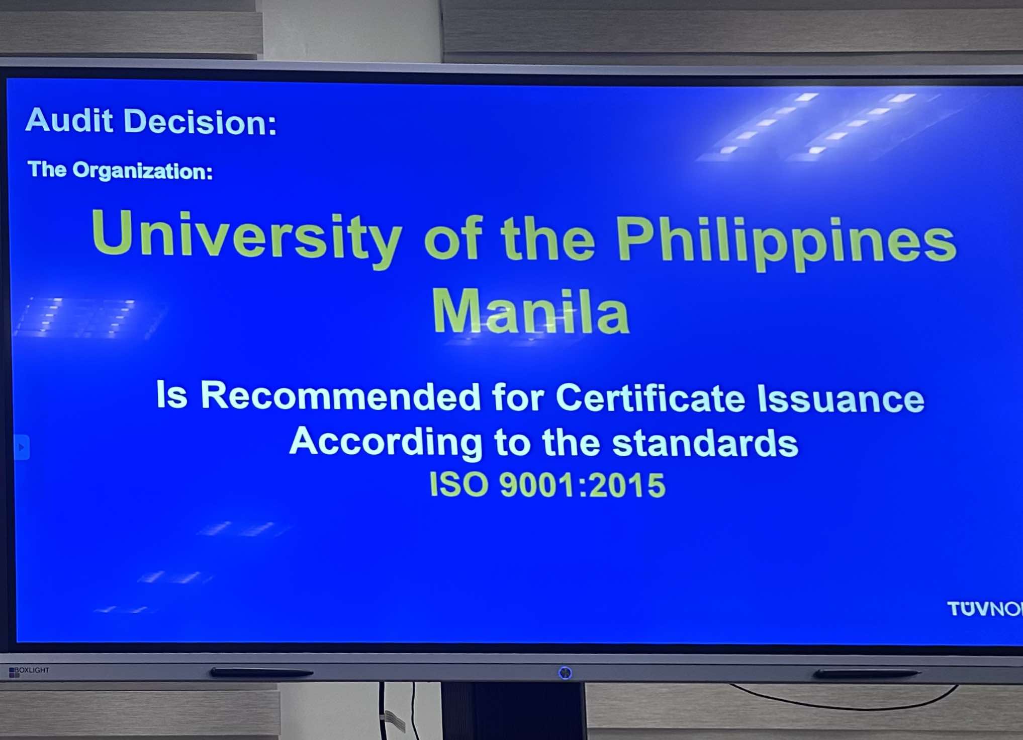 The University of the Philippines Manila has been recommended for recertification to the ISO 9001:2015 standards after a two-day audit conducted by TÜV NORD Philippines on Nov. 12–13, 2025.