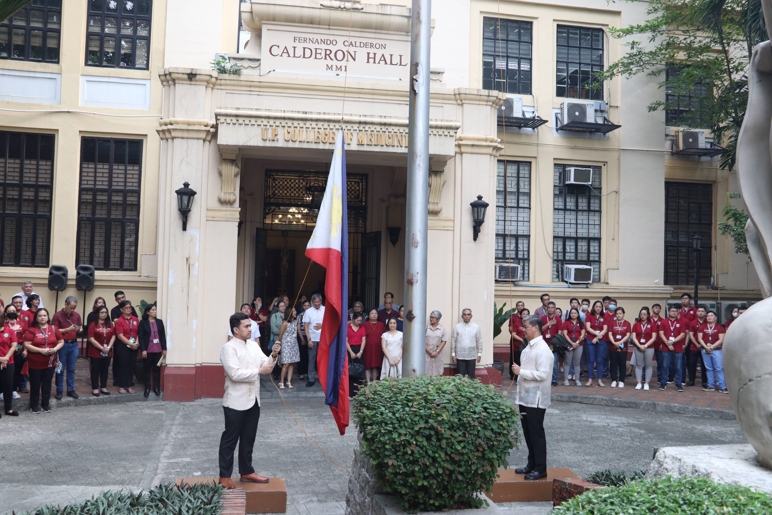 UP Faculty Regent Carl Marc L. Ramota and UPM Chancellor Michael L. Tee led the flag-raising ceremonies in UP Manila. The synchronized program also featured messages from all the Chancellors of UP’s constituent universities, as well as cultural production numbers.